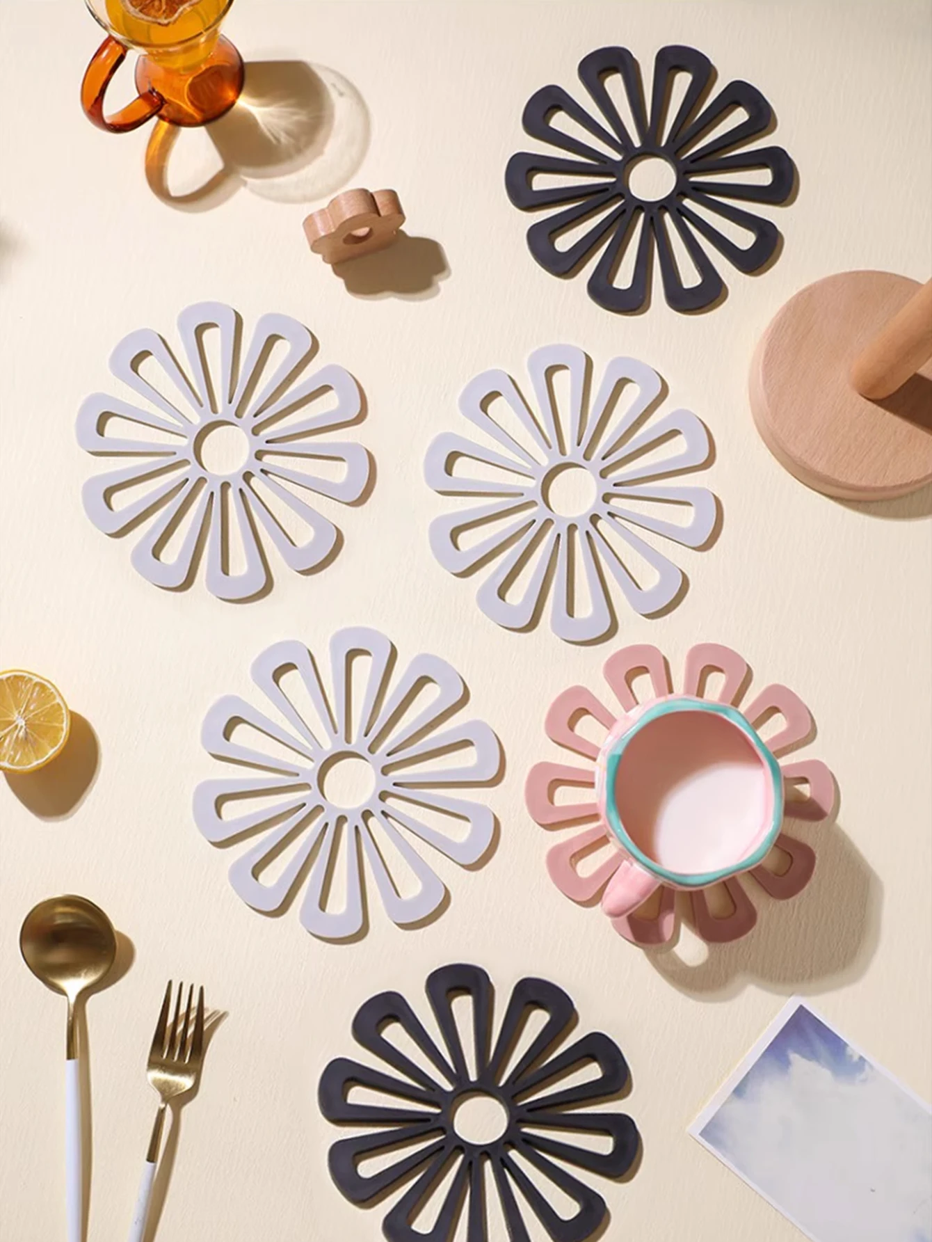 1/4pcs Elegant Flower Trivets, Non-Slip Hollow Hot Pot Mats for Heat Protection - Decorative Kitchen Essentials