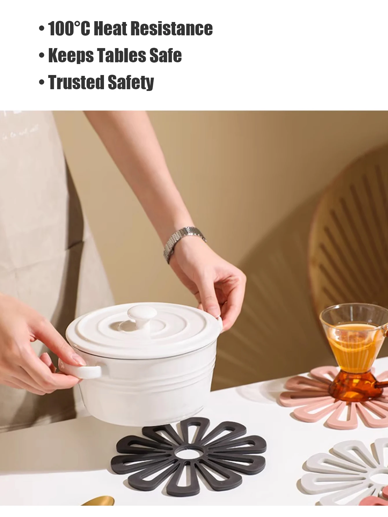 Product Highlights:Superior Heat Resistance: Withstands extreme temperatures, providing reliable protection for your dining table from hot pots, pans, and bowls.