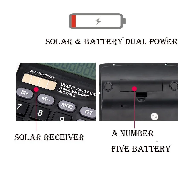Feature: solar energy,Dual battery power supply,calculator,Household goods,office supplies,liquid crystal display,financial instruments,Accounting tools,convenient,plastics