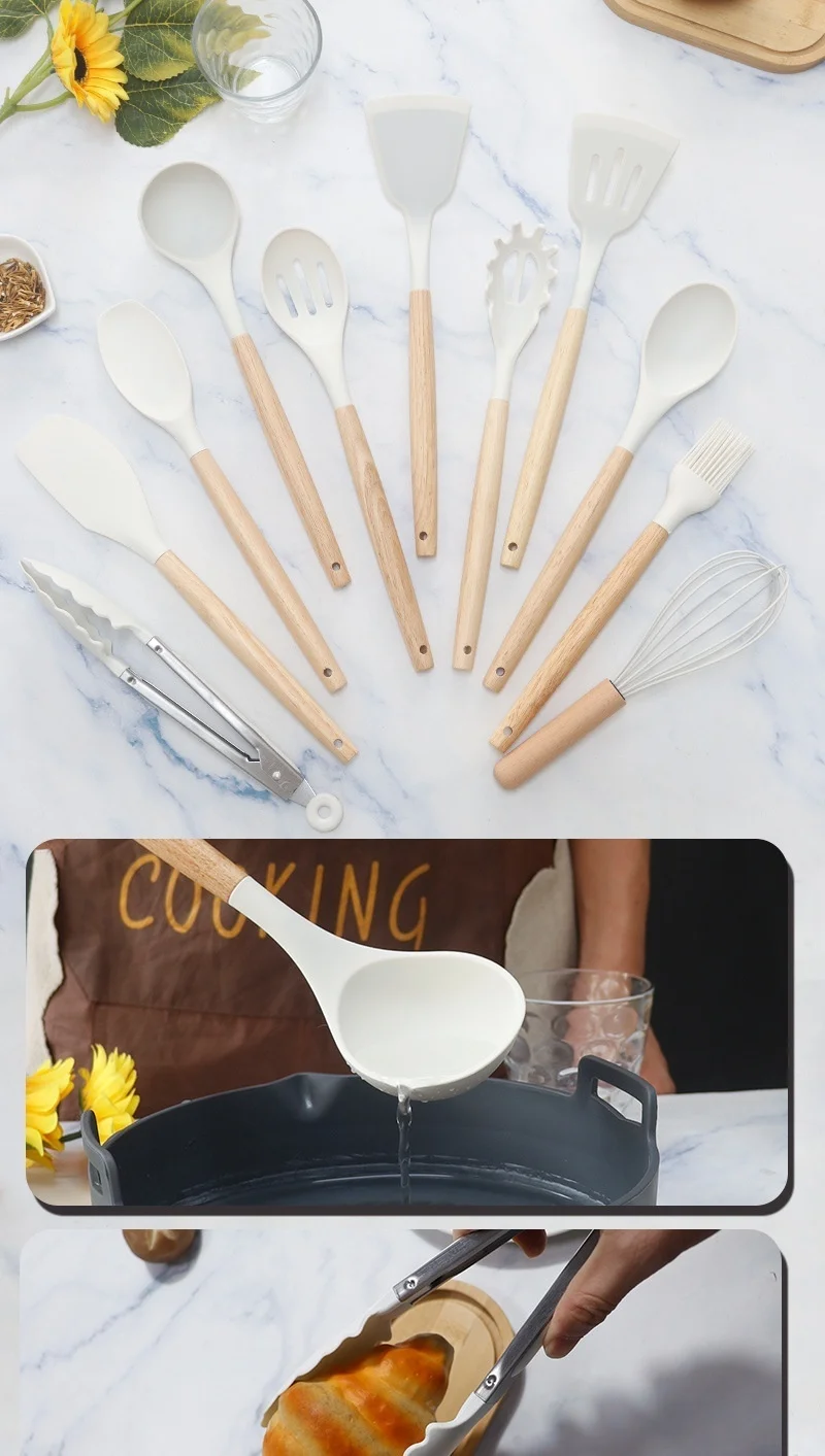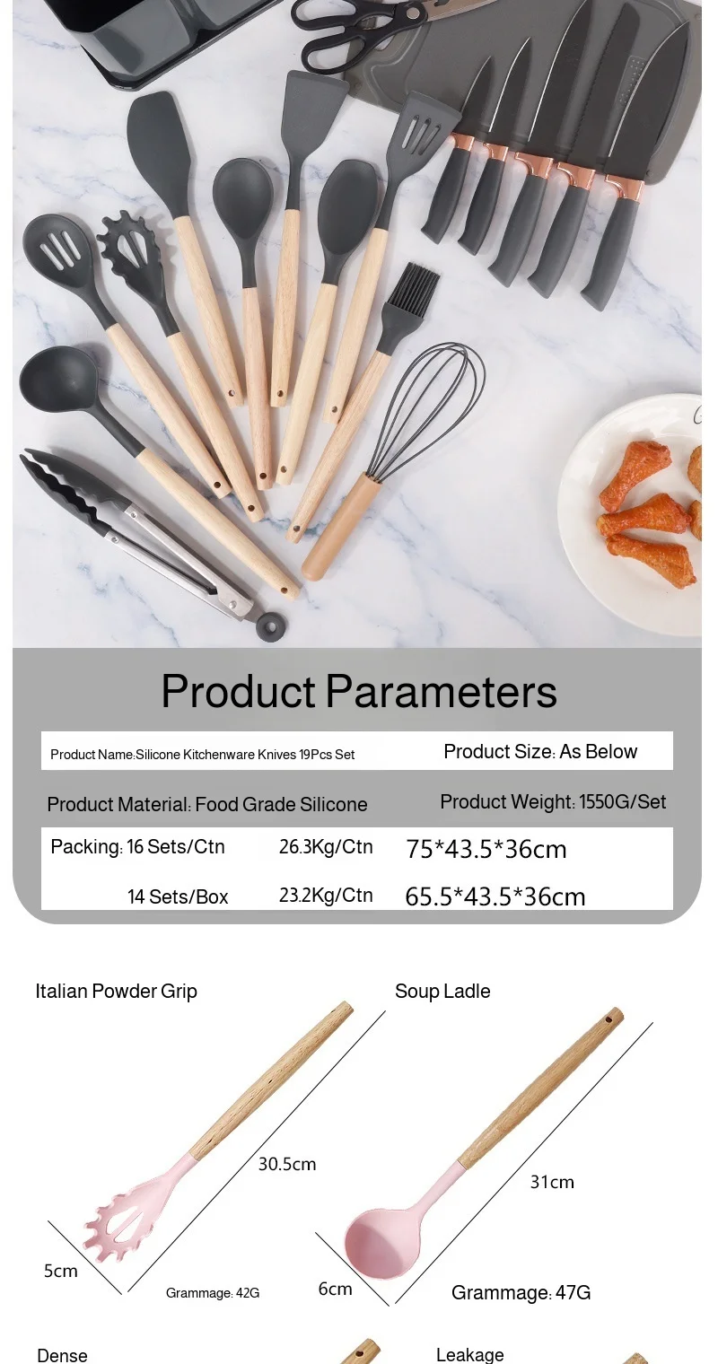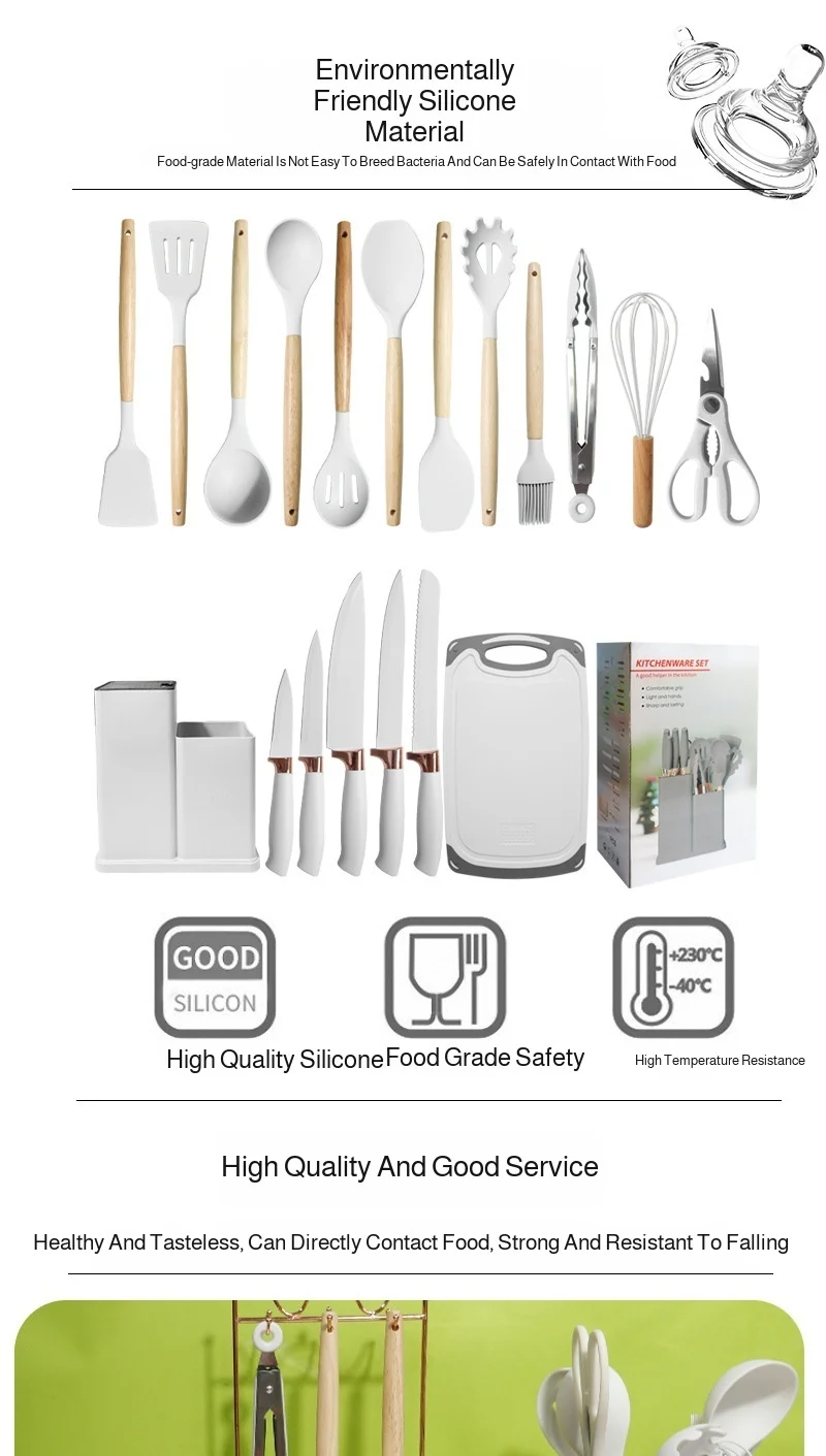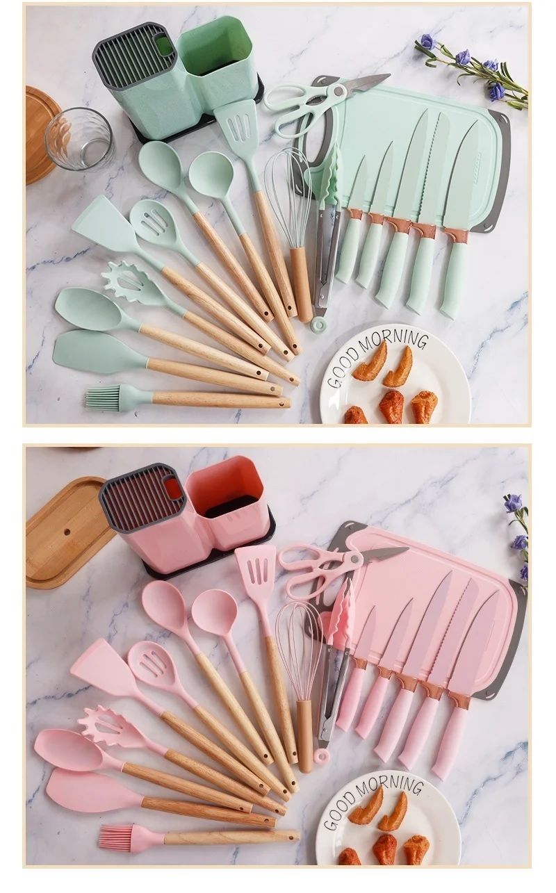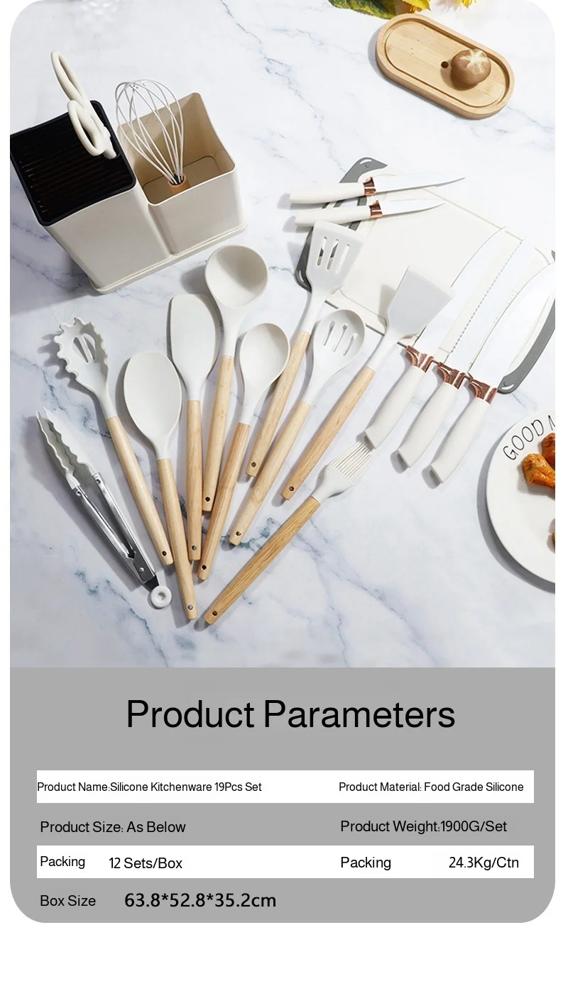 19pcs Silicone Kitchen Utensils Set Non-Stick Cookware Safe Heat-Resistant Cooking Spatula Spoon Knife Home Kitchenware Tools