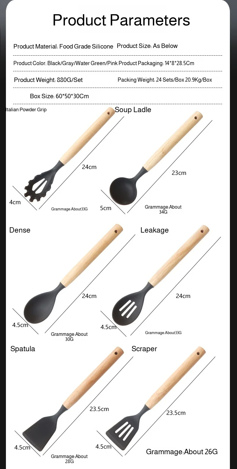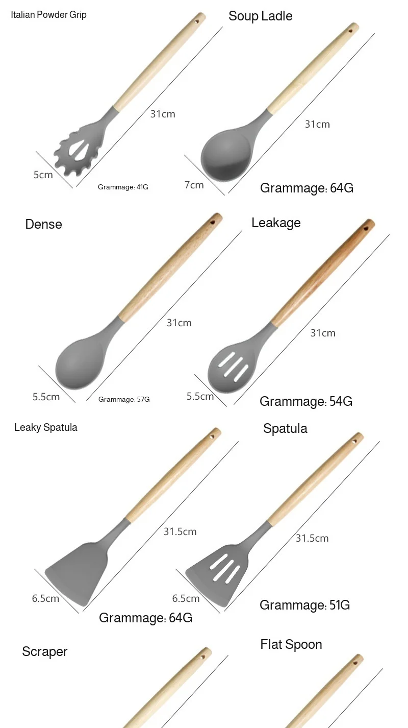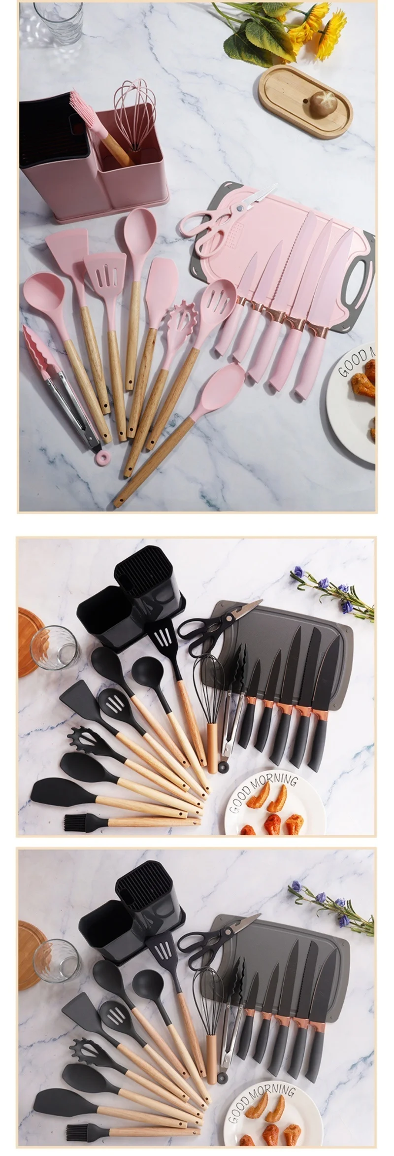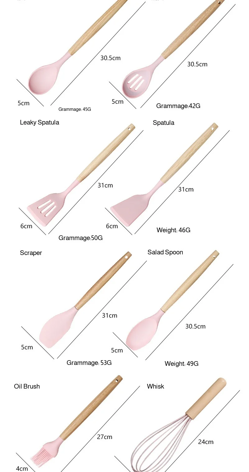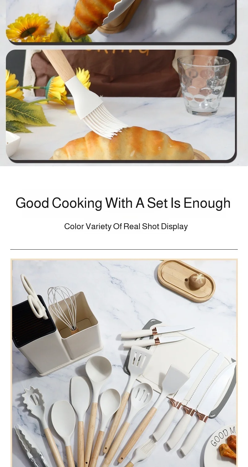 19pcs Silicone Kitchen Utensils Set Non-Stick Cookware Safe Heat-Resistant Cooking Spatula Spoon Knife Home Kitchenware Tools