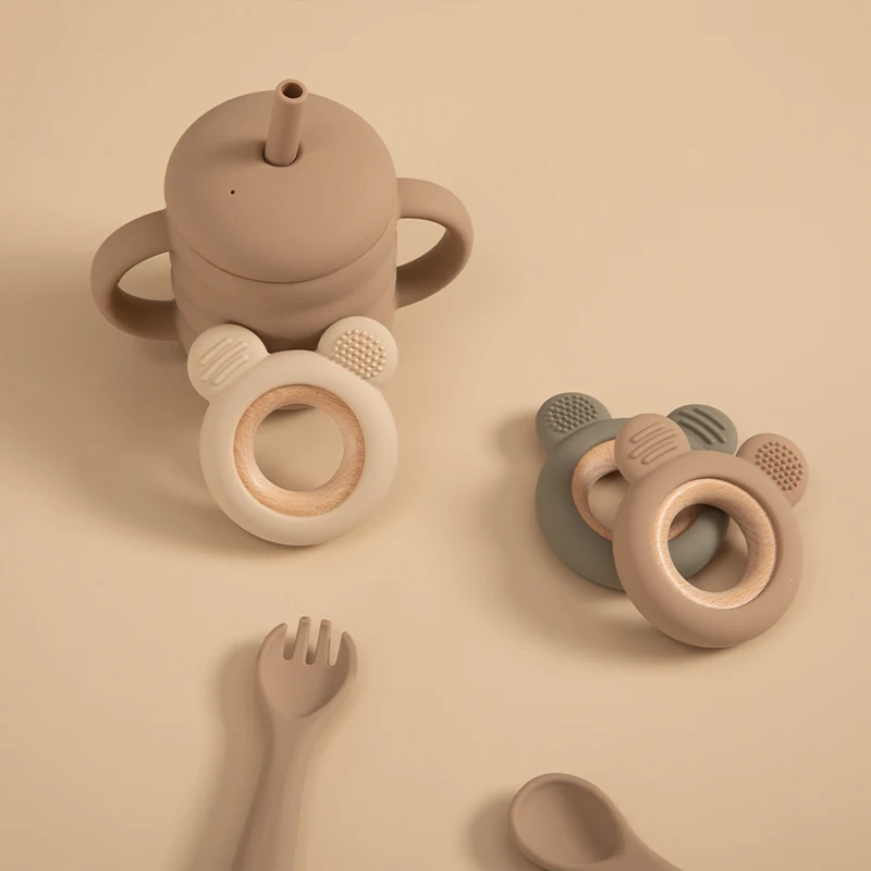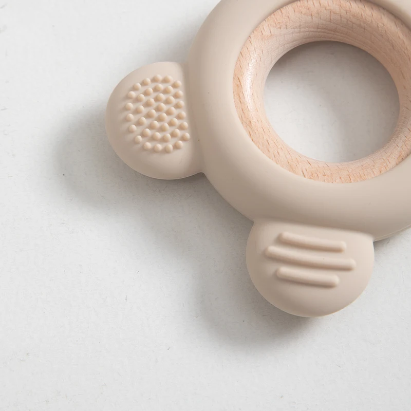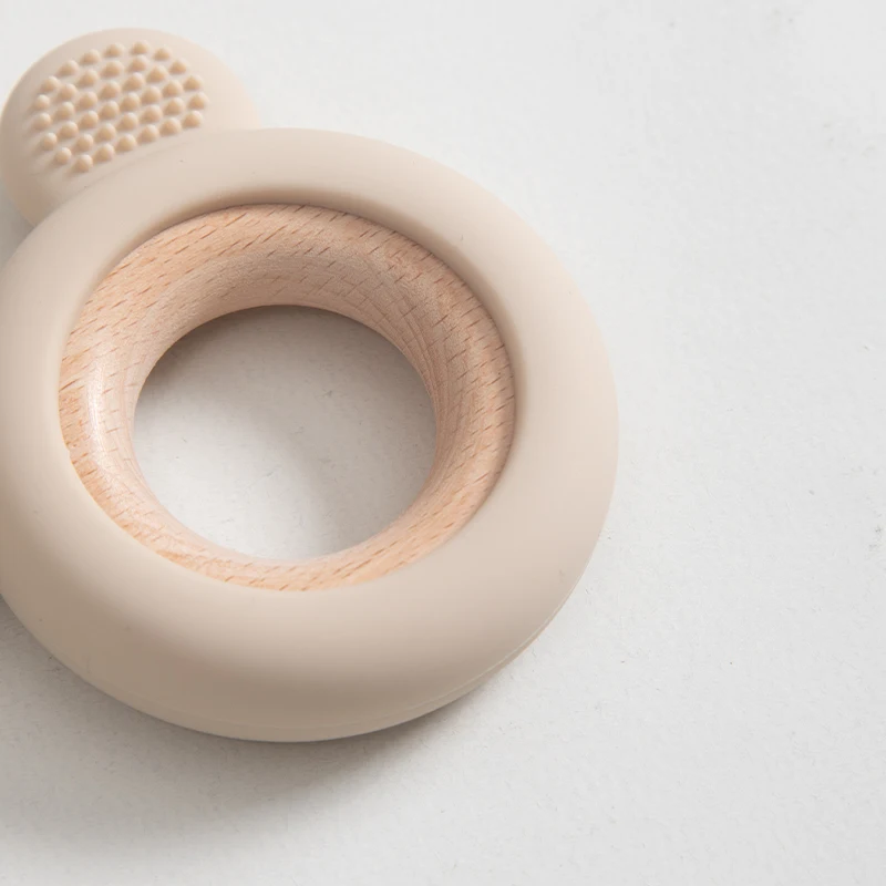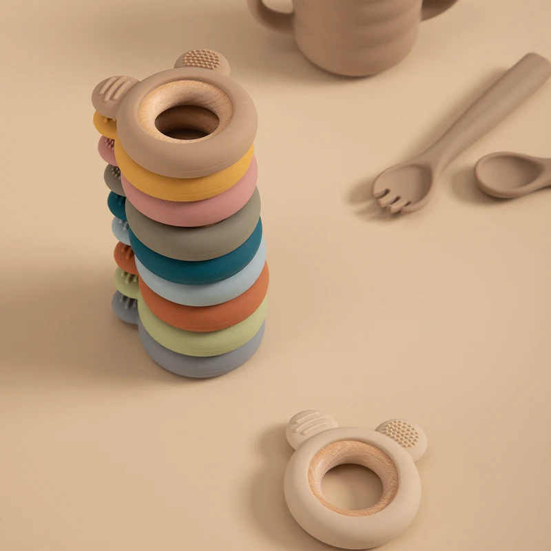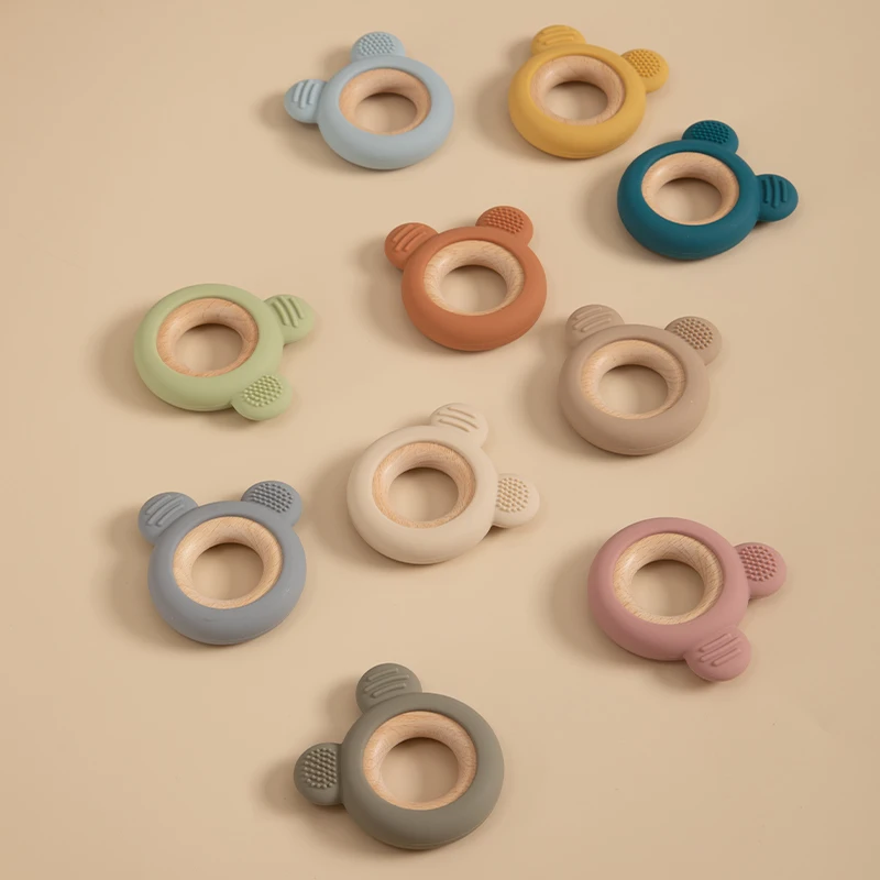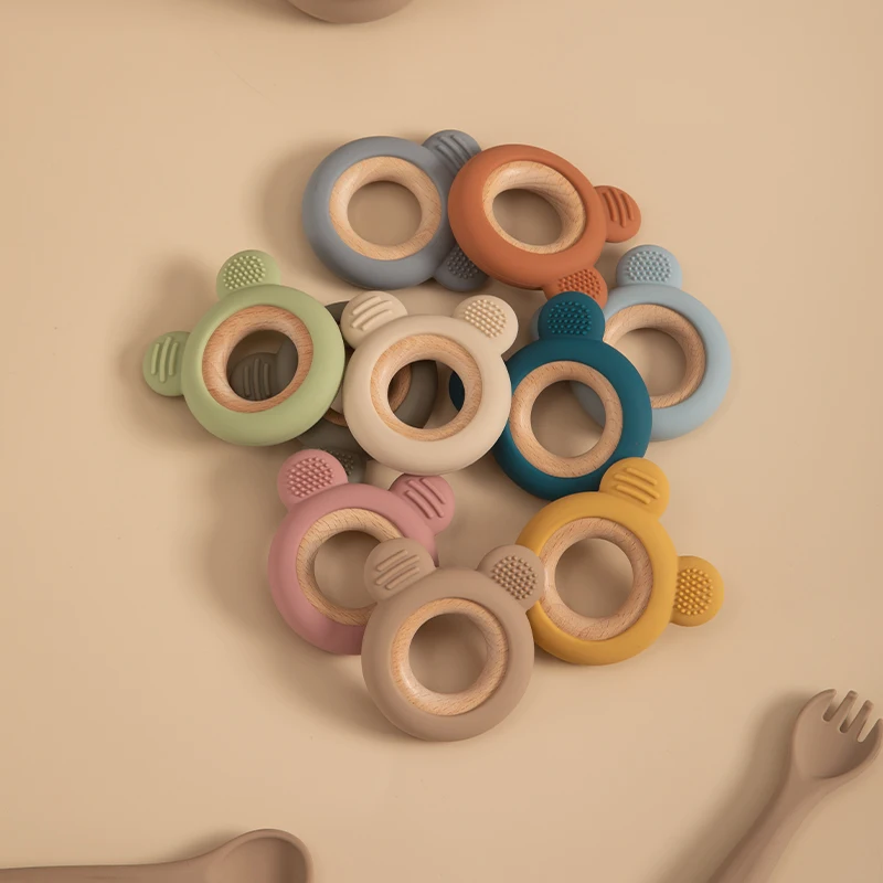 1PC Baby Silicone Wooden Teether Ring Cute Bear Infant Nursing Teething Toys Newborn Health Care Chewing Toy Baby Accessories