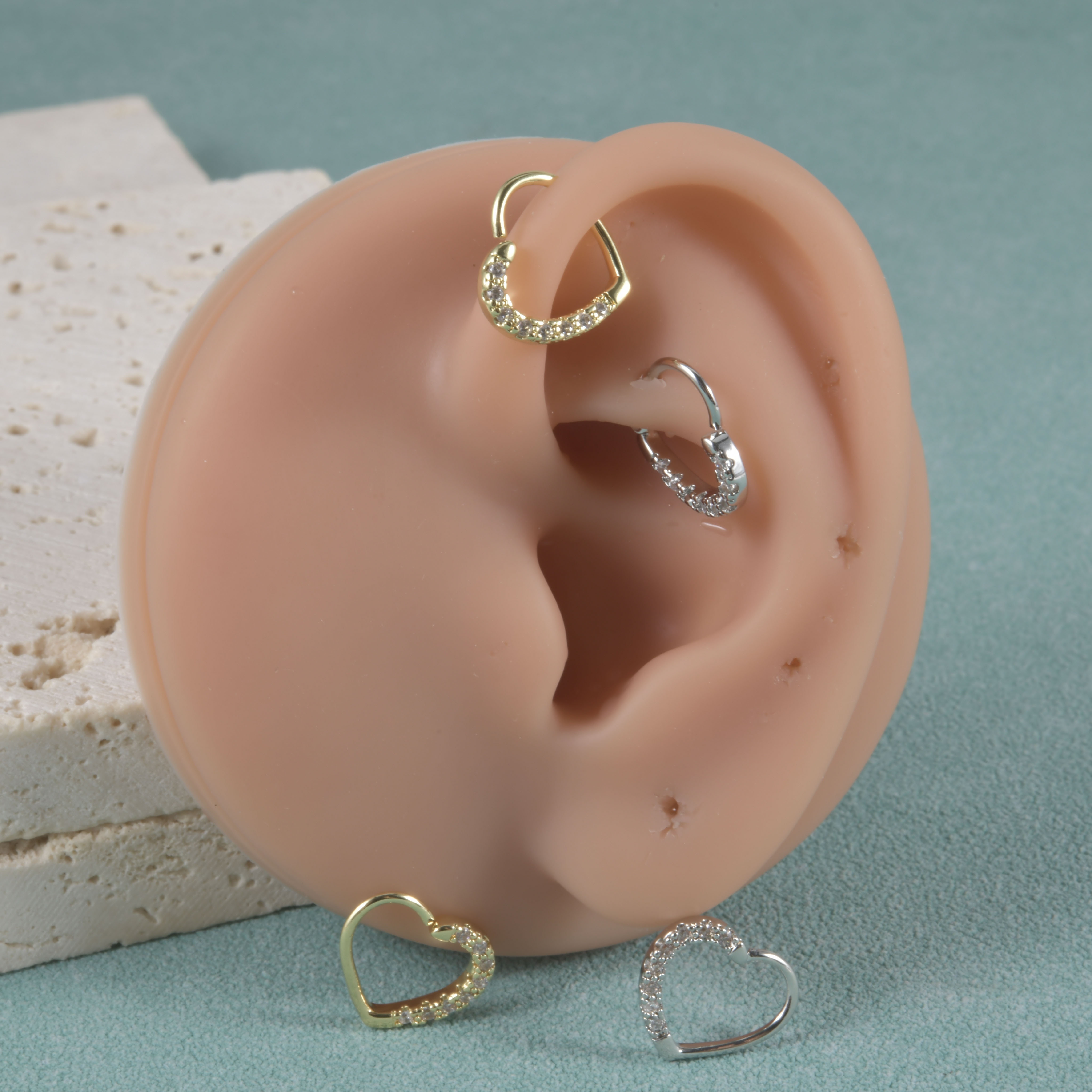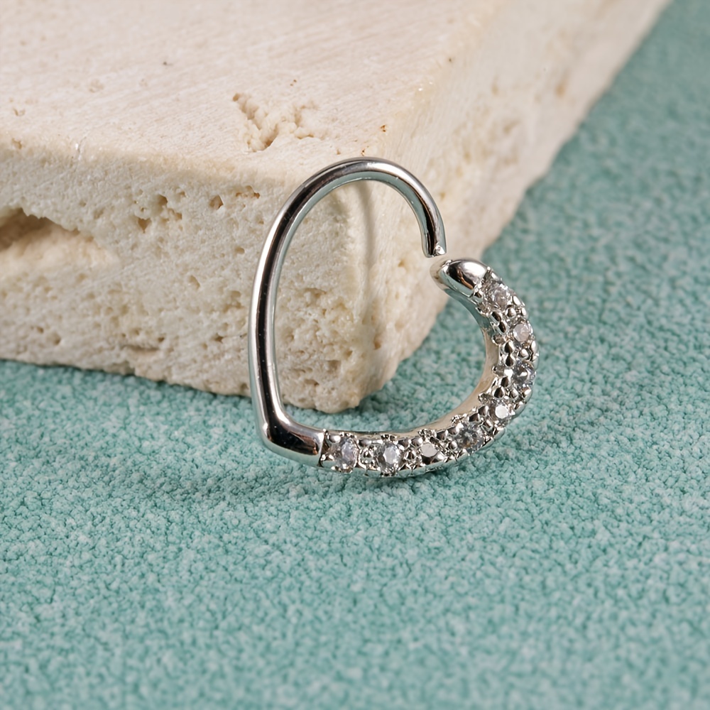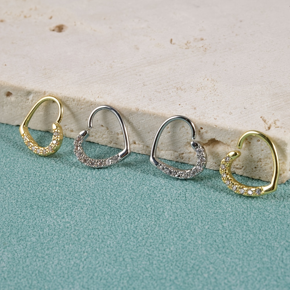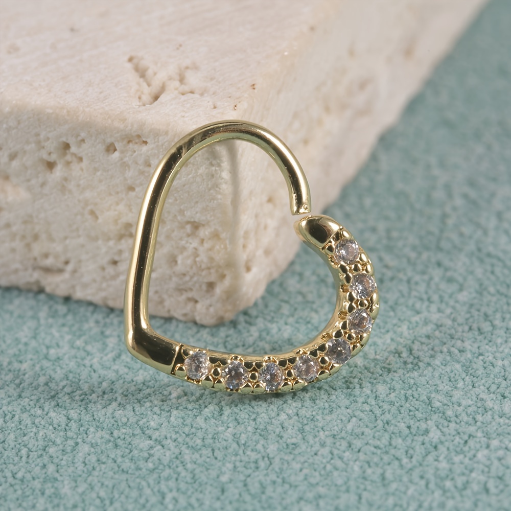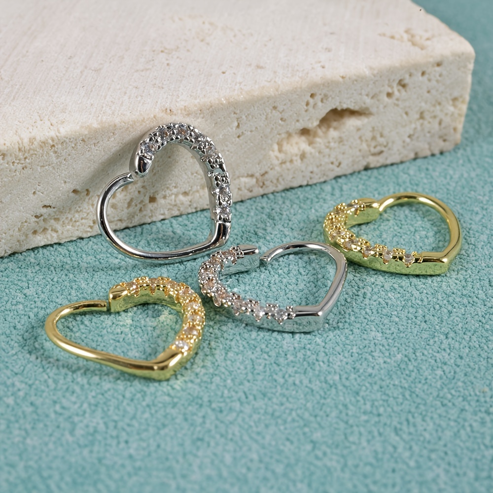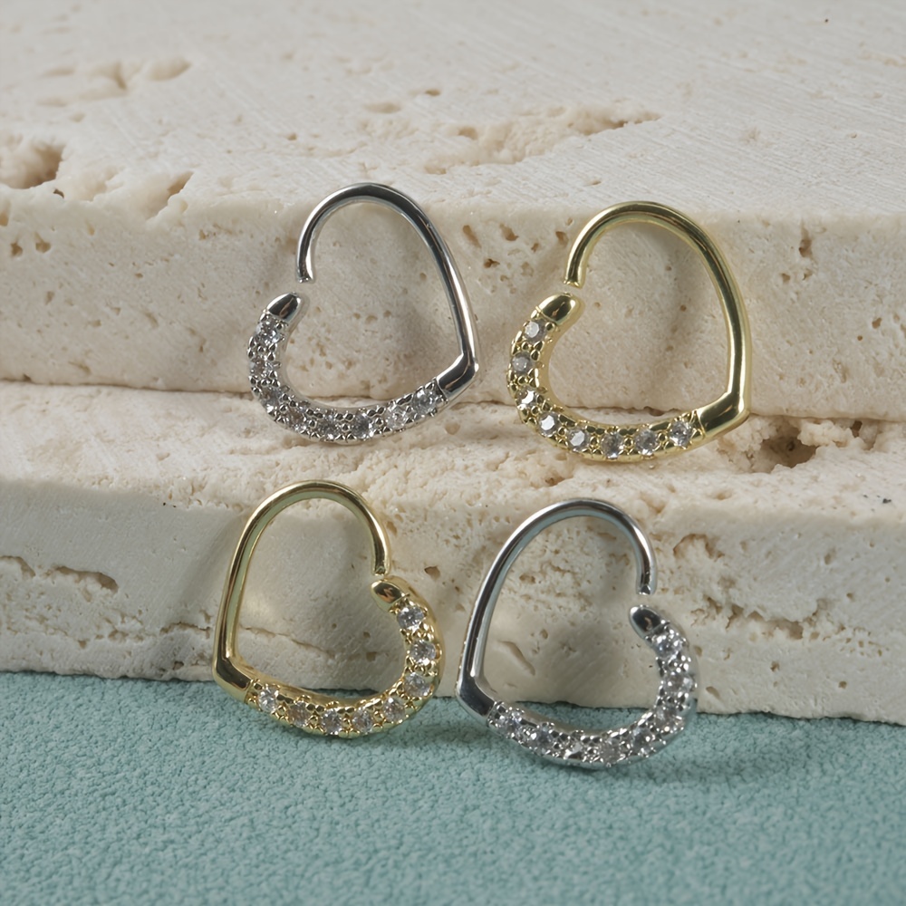 1PC Copper Heart With CZ Gems Cartilage Tragus Daith Piercing Earring