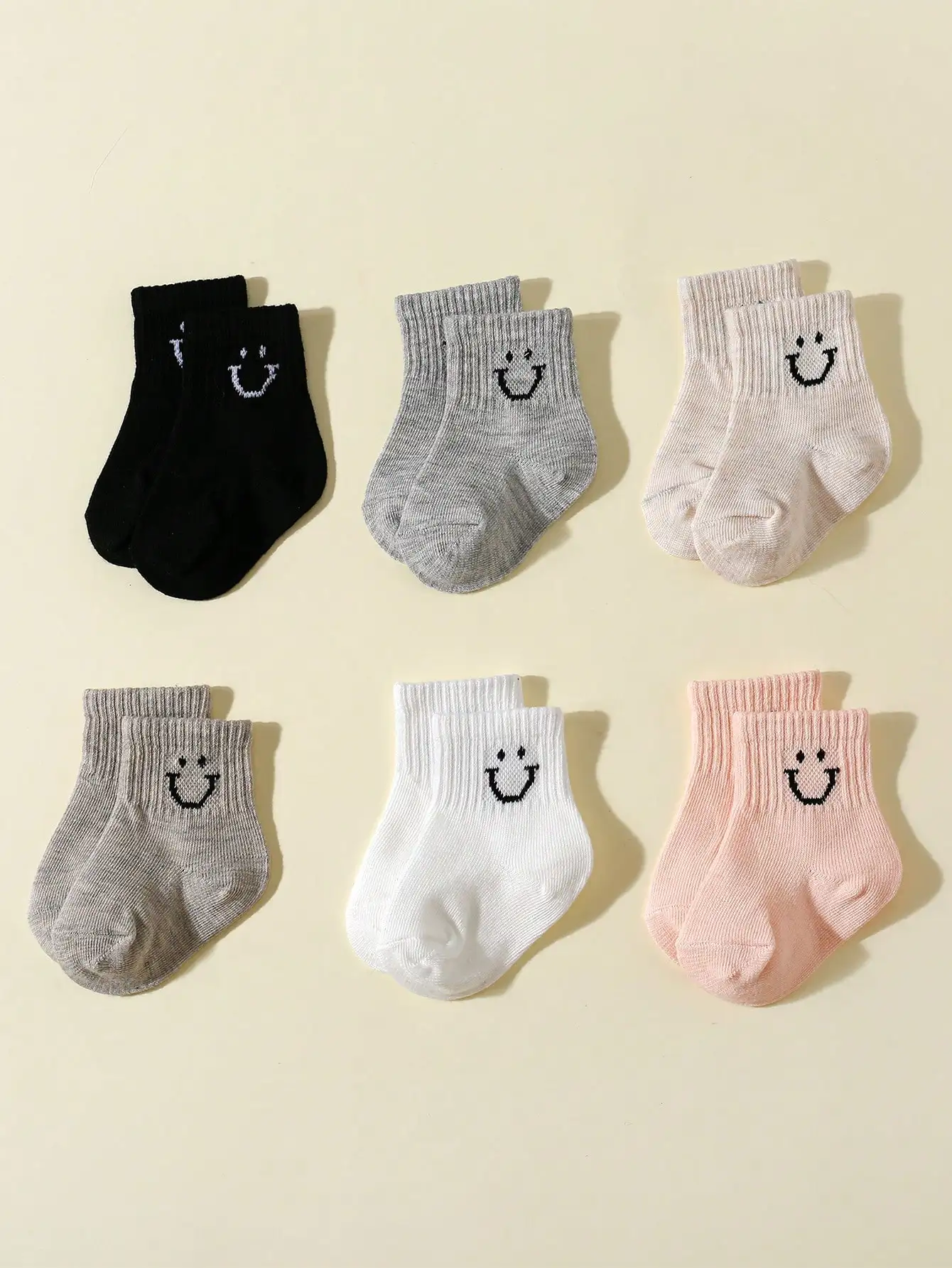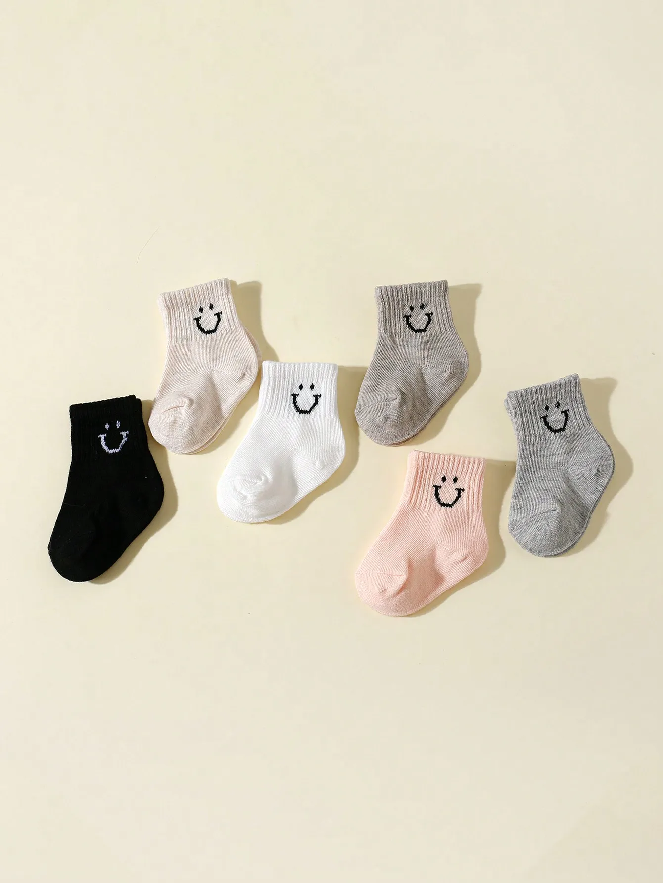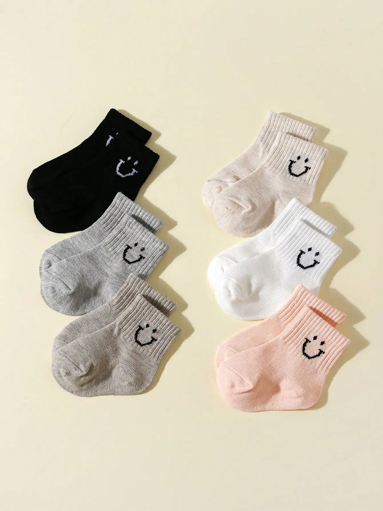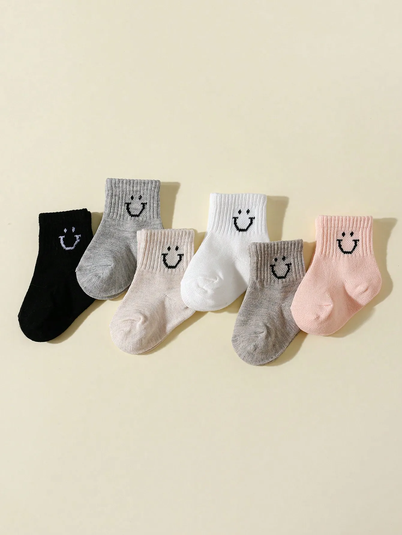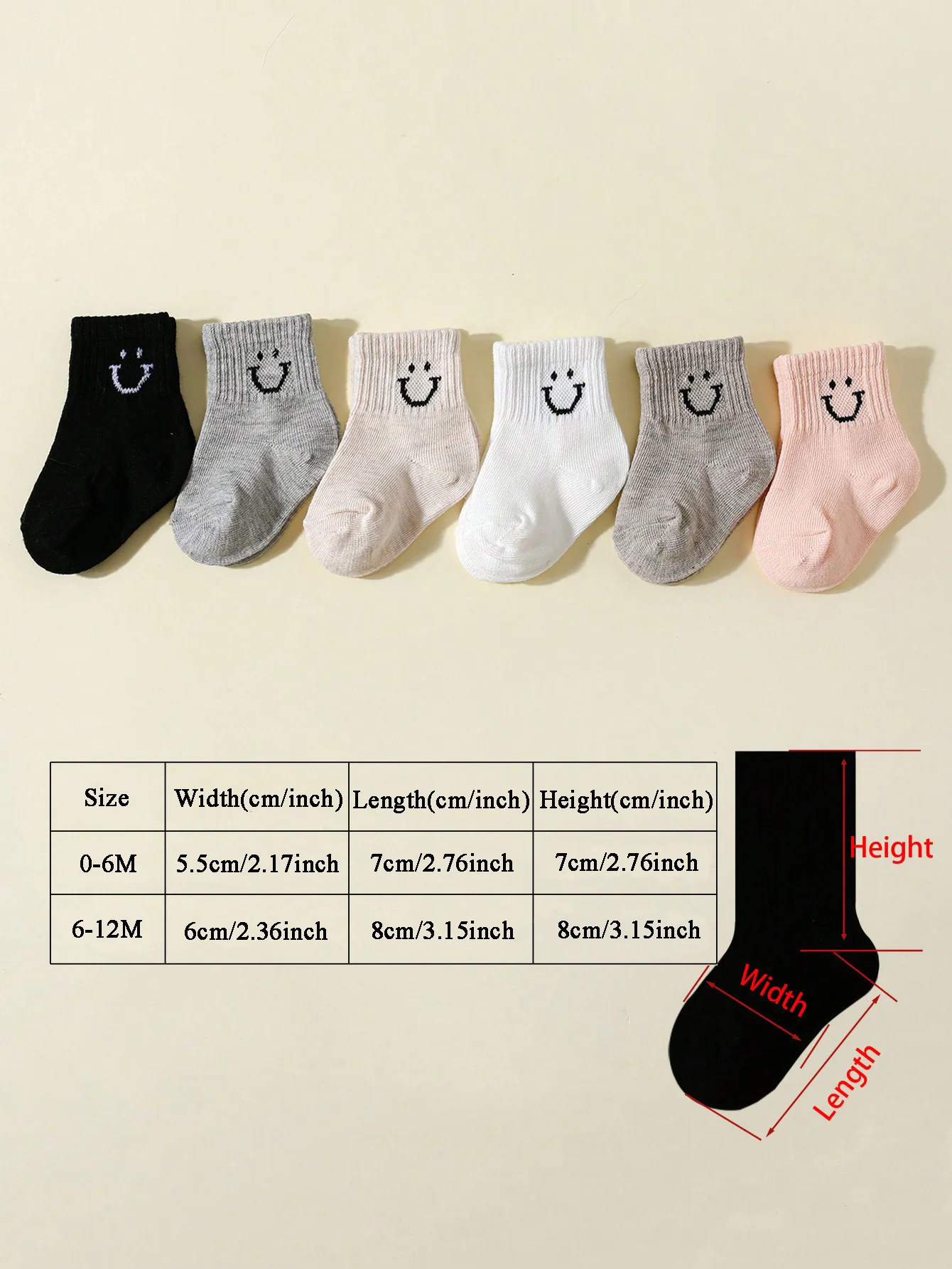 6 Pairs Baby Smile Socks, Cute Side Smile Ankle Socks for 0-12 Month Newborn Infant Boy Girl Non-Slip Funny Cartoon Toddler Socks