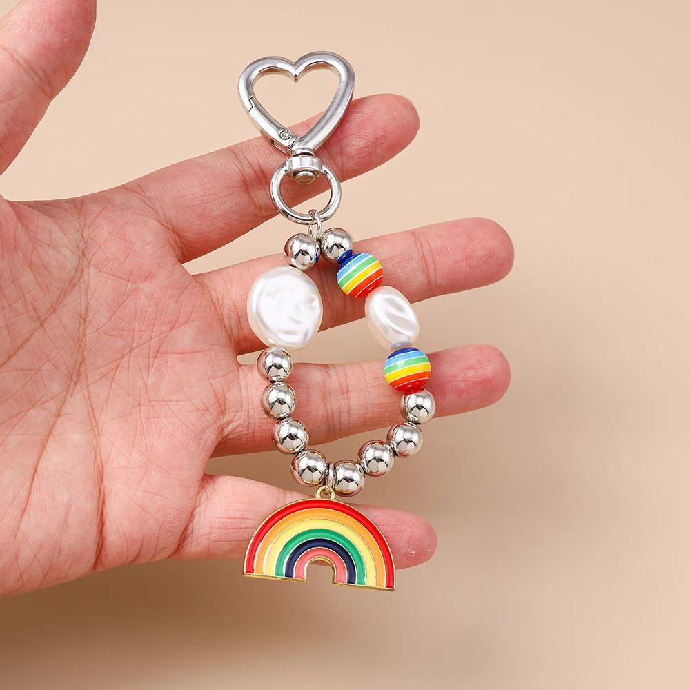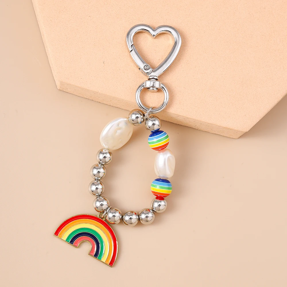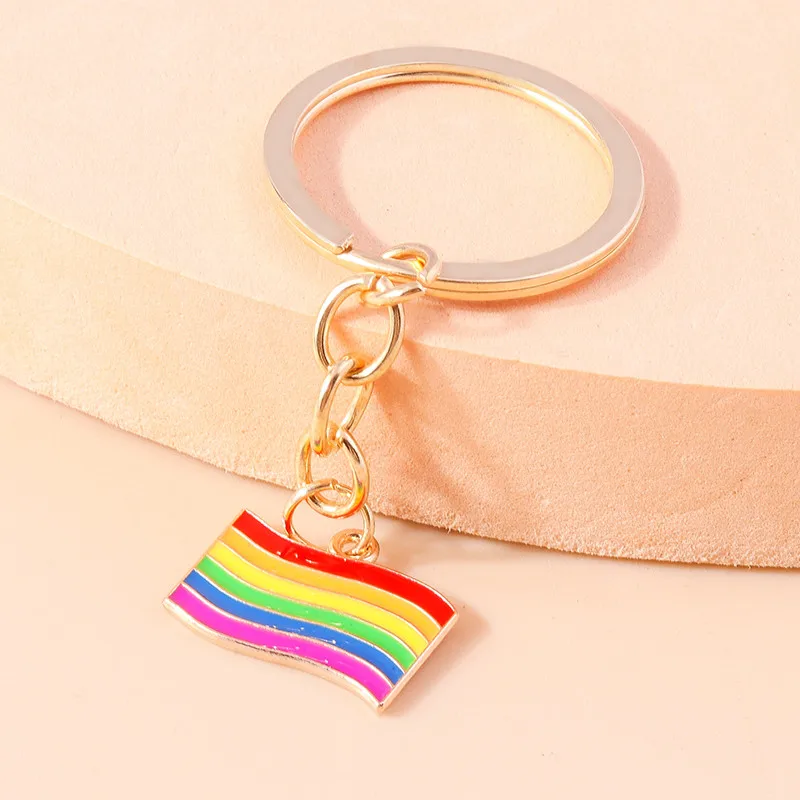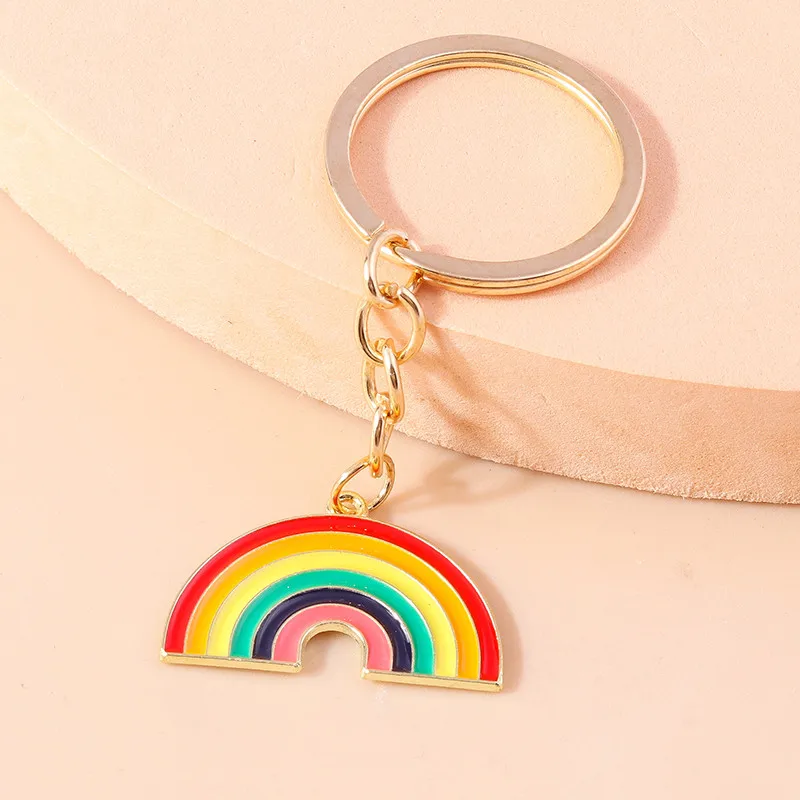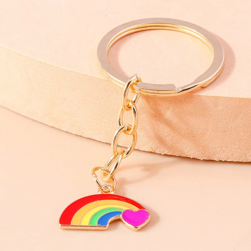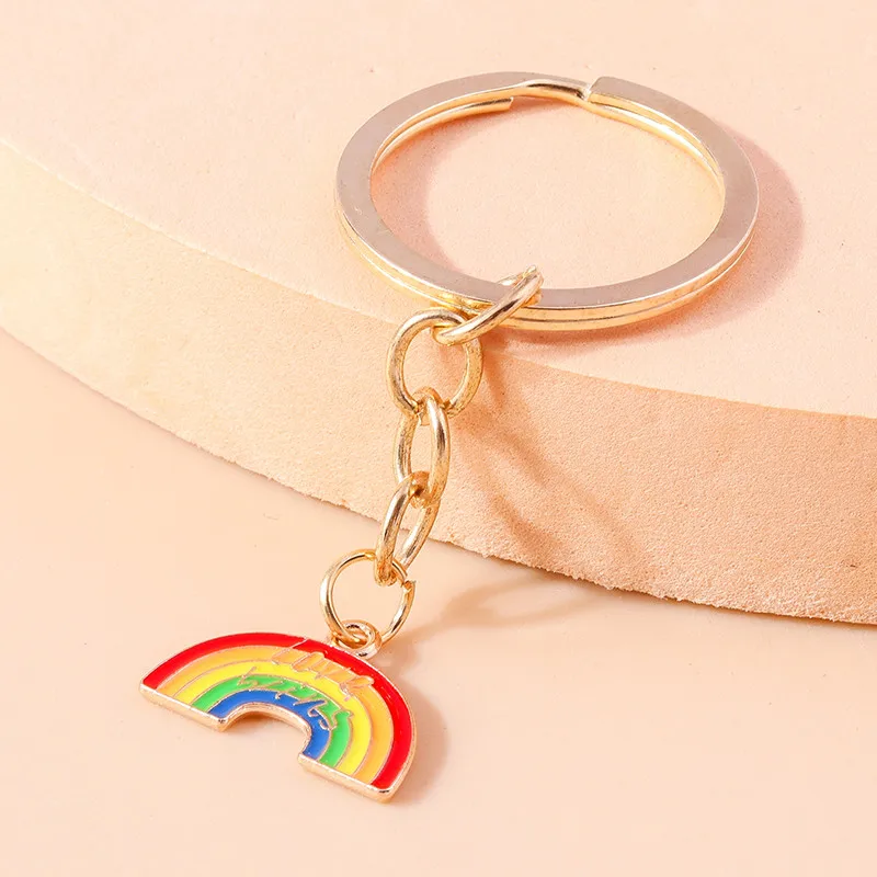 Aihua New In Y2K Colorful Rainbow Keychain For Women Men LGBT Rainbow Key Ring Chains Bag Pendant Trendy Party Jewelry Gifts