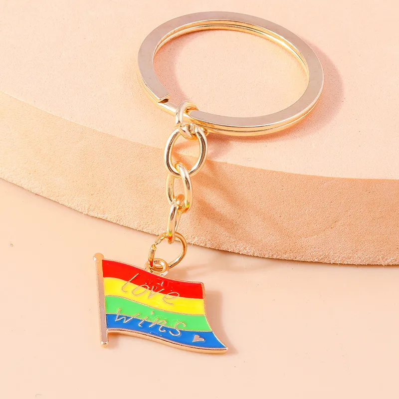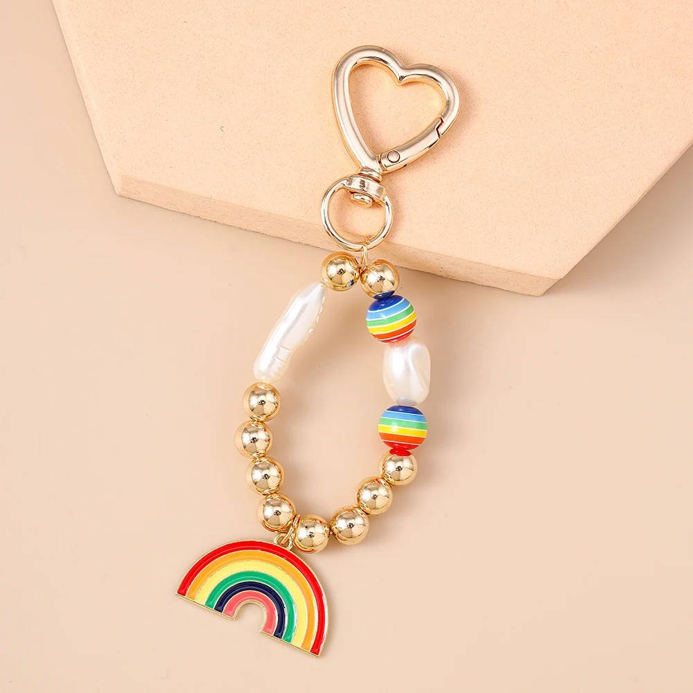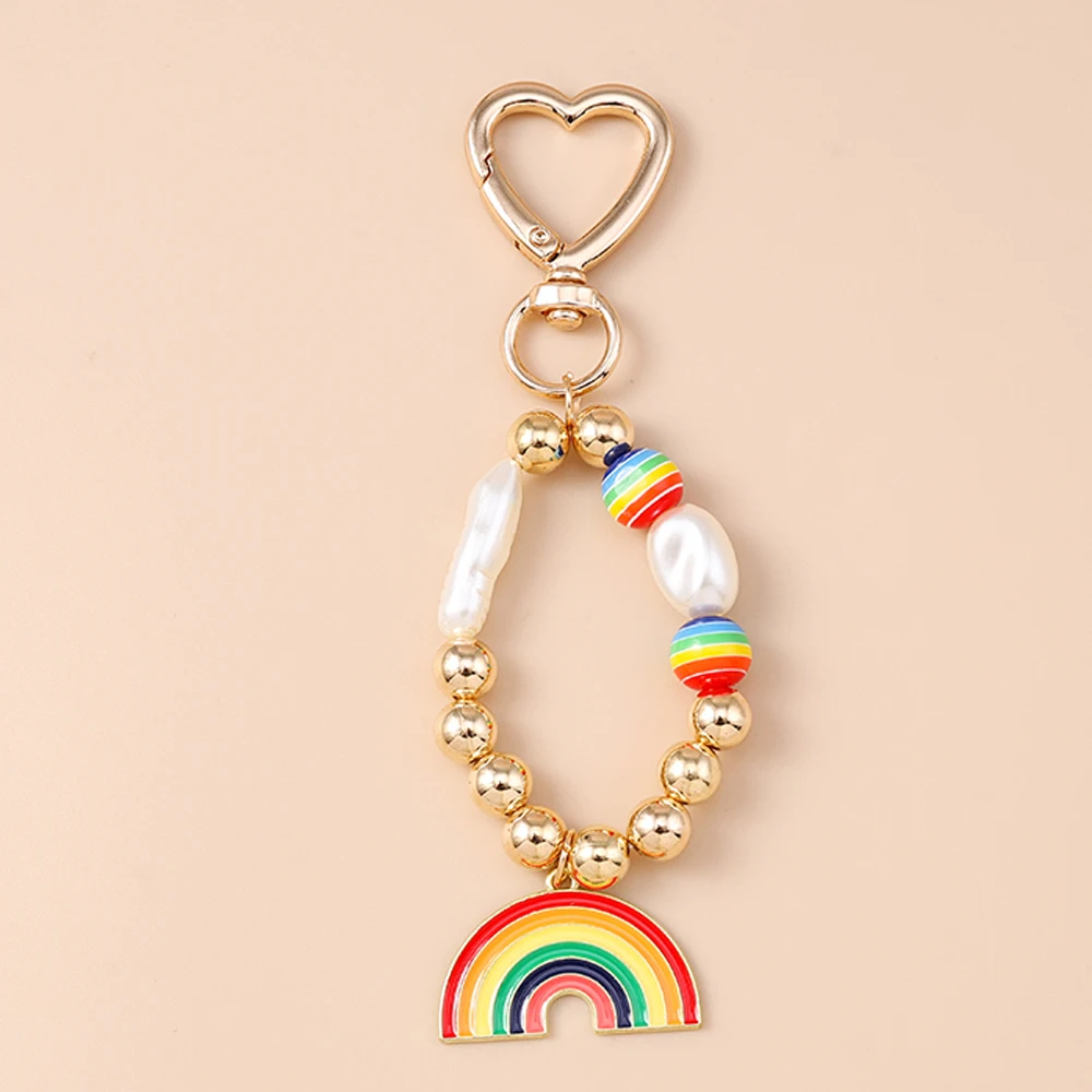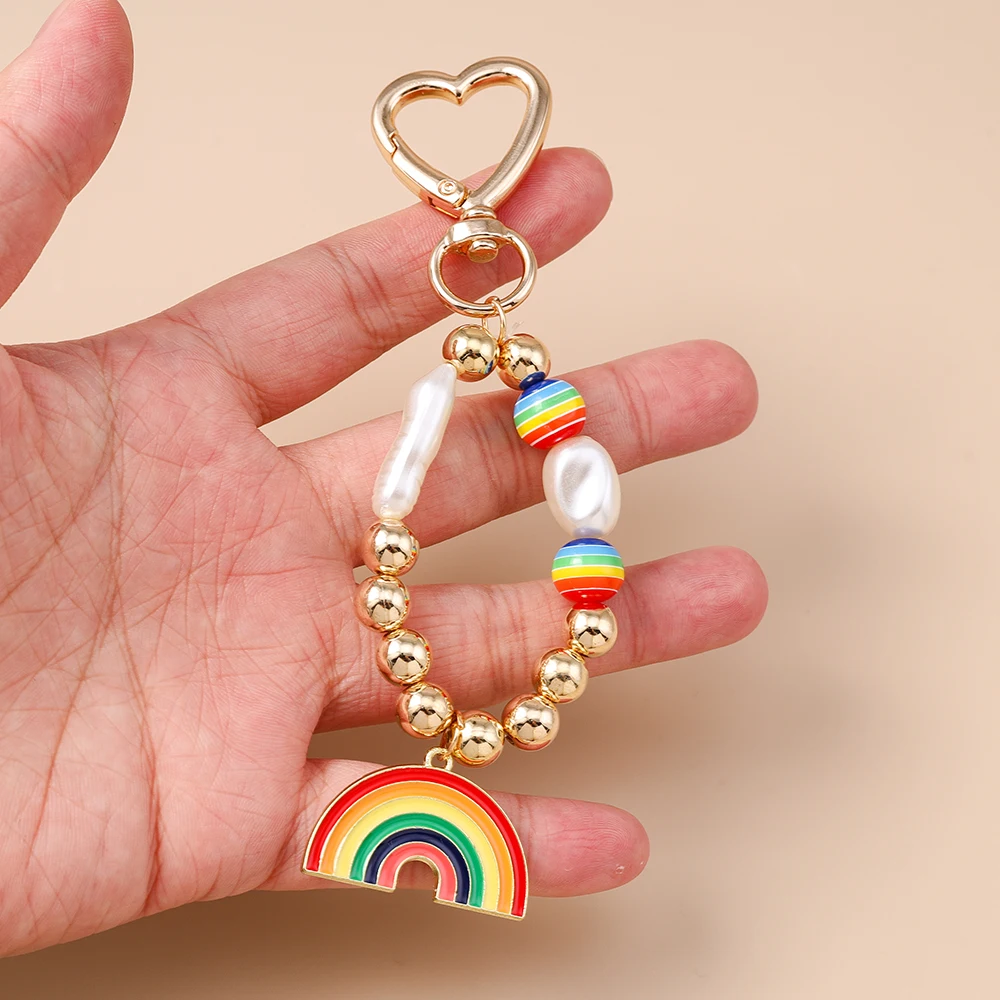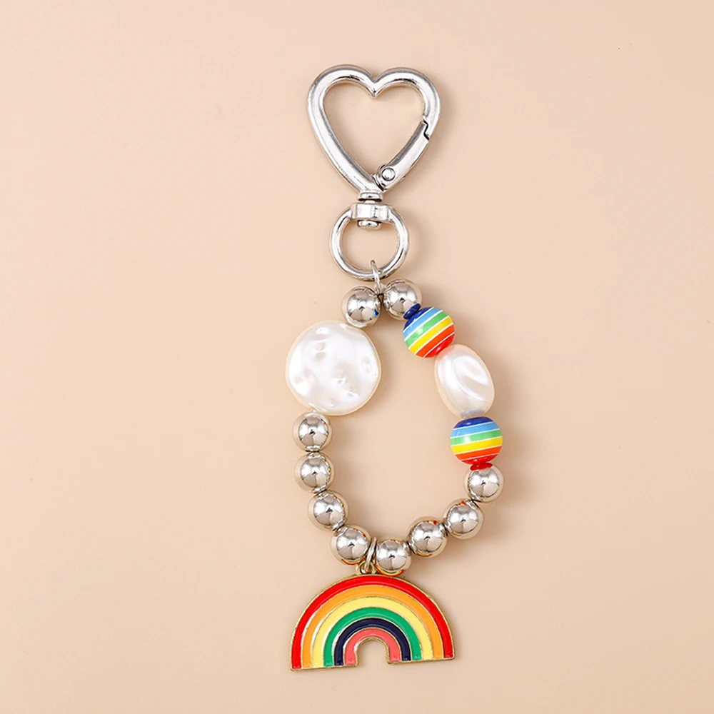 Aihua New In Y2K Colorful Rainbow Keychain For Women Men LGBT Rainbow Key Ring Chains Bag Pendant Trendy Party Jewelry Gifts