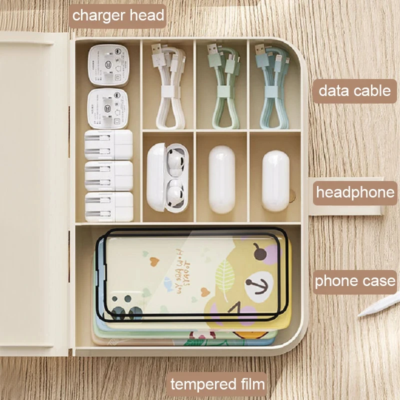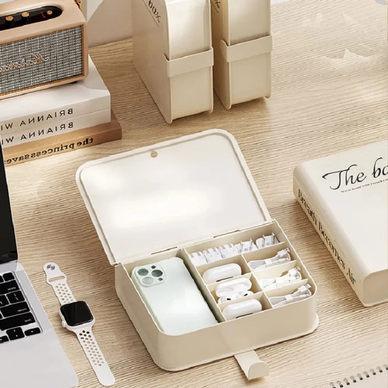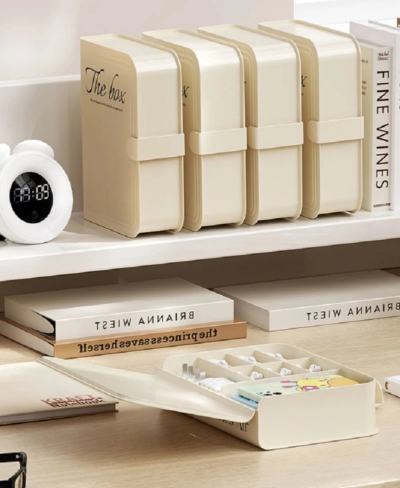 Book Shape Desktop Storage Box Dustproof Data Cable Charger Organizer Box Multi Grid Stationery Storage For Office Home Sorting