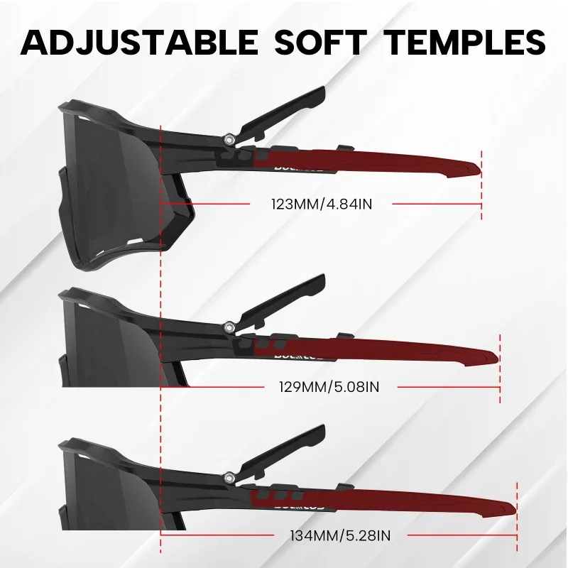 Full frame of biking sunglasses is made of TR90, which is soft, durable, combine with UV400 lens can protect your eyes from strong impact, for adult sport : mountain bike, running, softball, road bikes ,mtb riding, hiking, beach