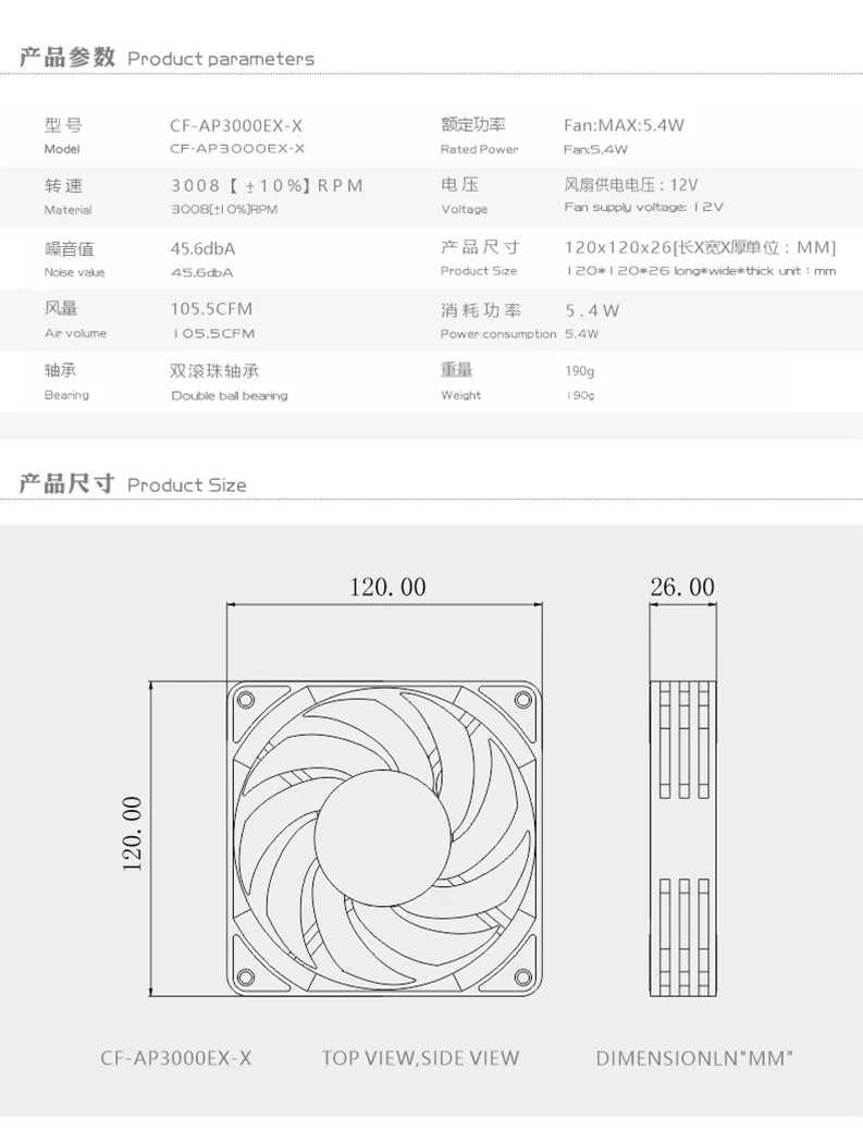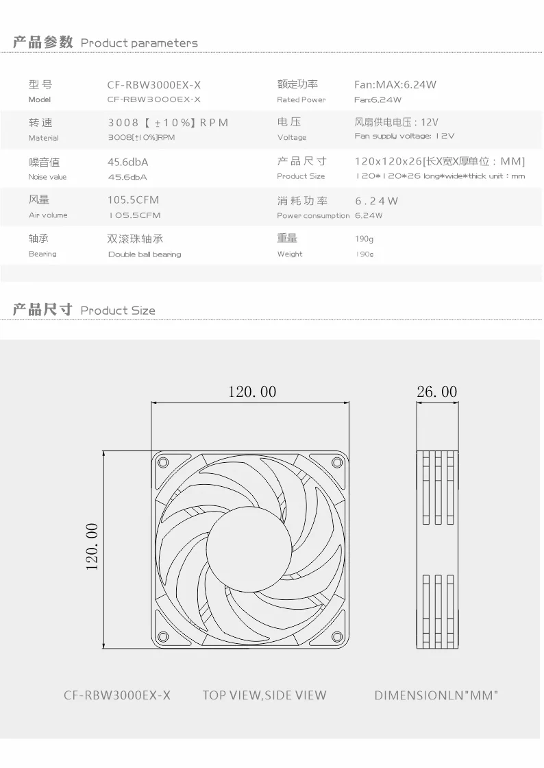 Bykski 120cm 4PIN PWM Fan Powerful High Flow Computer Case ,Radiator Cooler Master Max 3000RPM ,Two Ball Bearing ,CF-AP3000EX-X