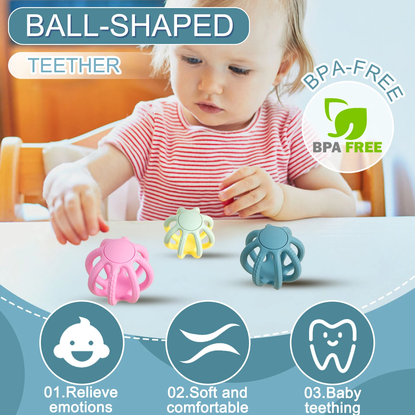 Color Kids Baby Silicone Teether Toy BPA Free Baby Teether Toy Baby Oral Care Chewing Toy Baby Stuff Squeezable Baby Accessories
