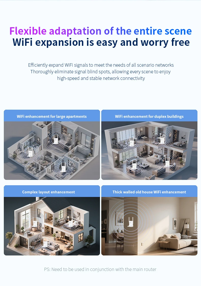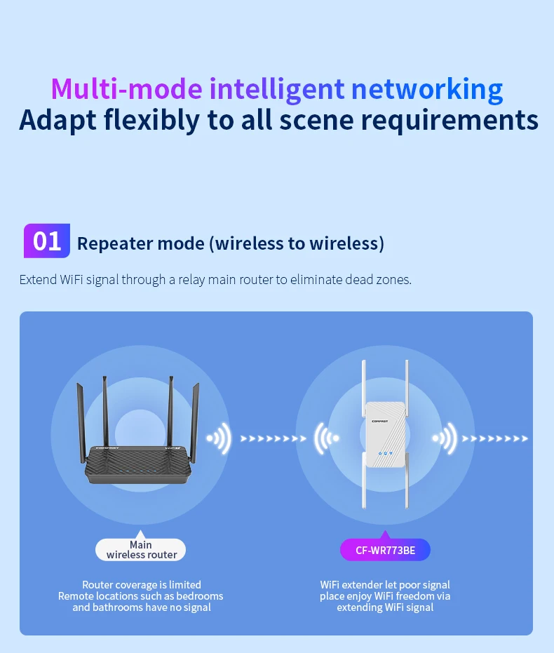 7.CF-WR7738BE is suitable for scenarios such as duplex buildings, large flats, villas, and offices where large-area routers arE not fully covered
