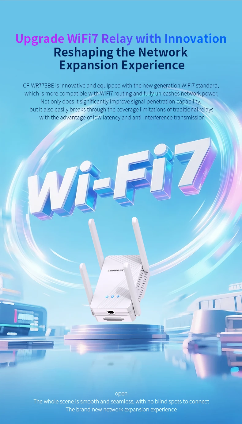 COMFAST WiFi7 BE3600 Wireless Extender 3570Mbps 2.4G/5G Repeater With 4*5dBi Antennas & 1*1000M RJ45 Port For Home/Office/Gaming