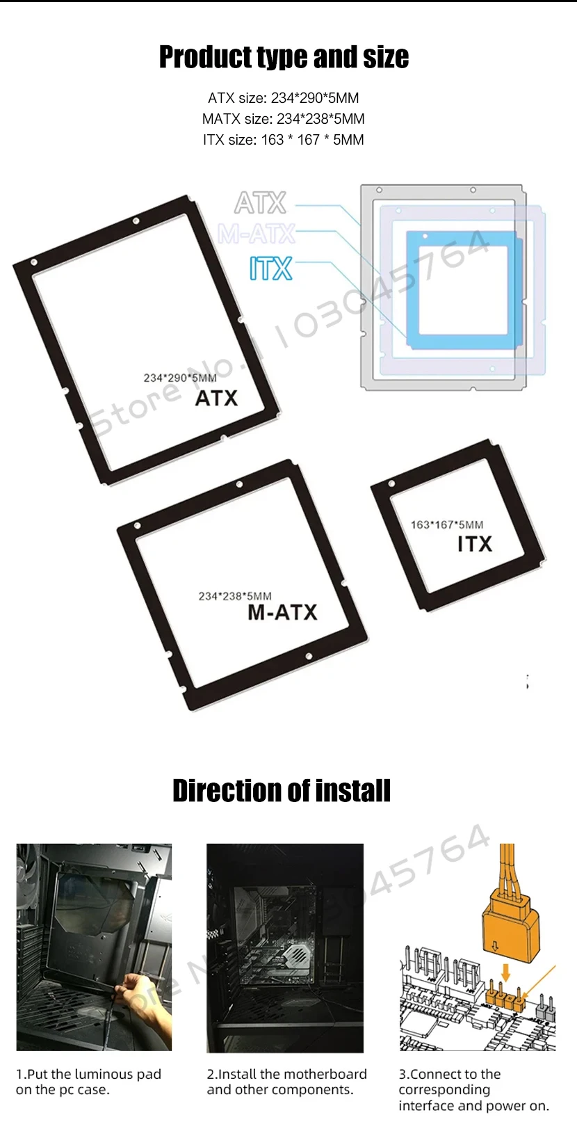 Desktop PC MB Backplate RGB Decorative Lightboard ATX/MATX/ITX Motherboard Back Light Light-emitting 5V ARGB SYNC