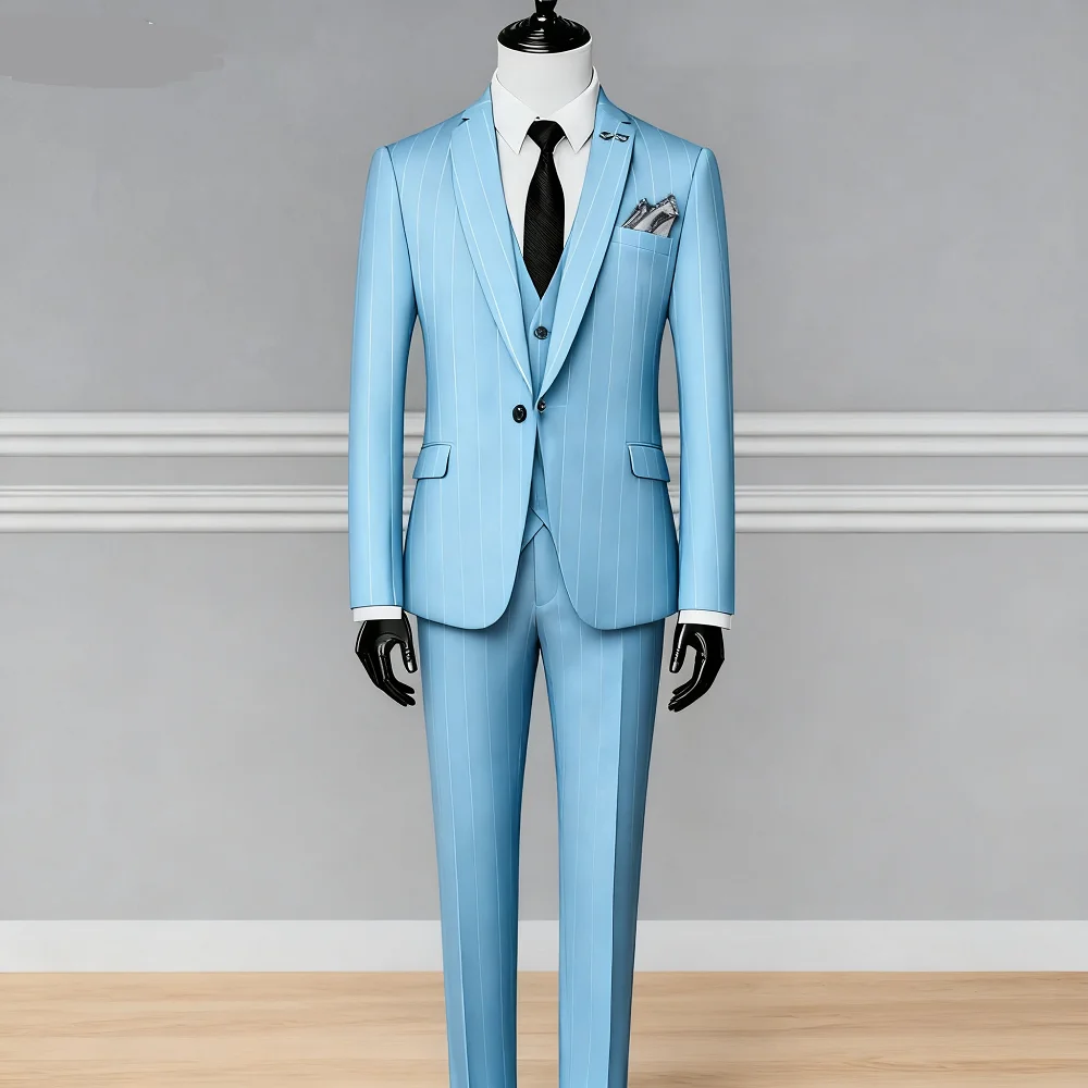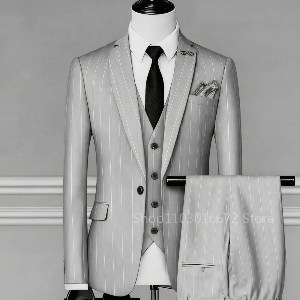 Elegant Black Grey Men's Business 3-Piece Suit Slim Fit Wedding Jacket Vest Finesse Adjustable Ternos for Masculine Fashion