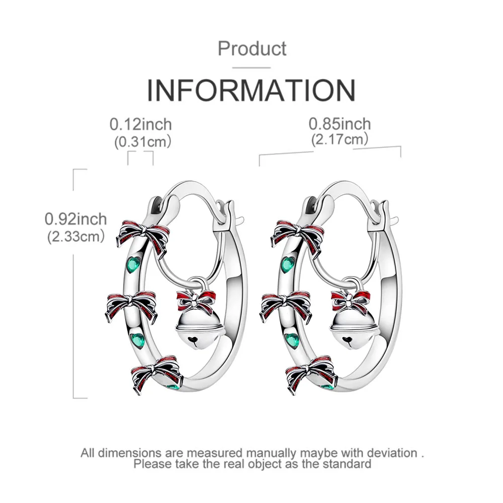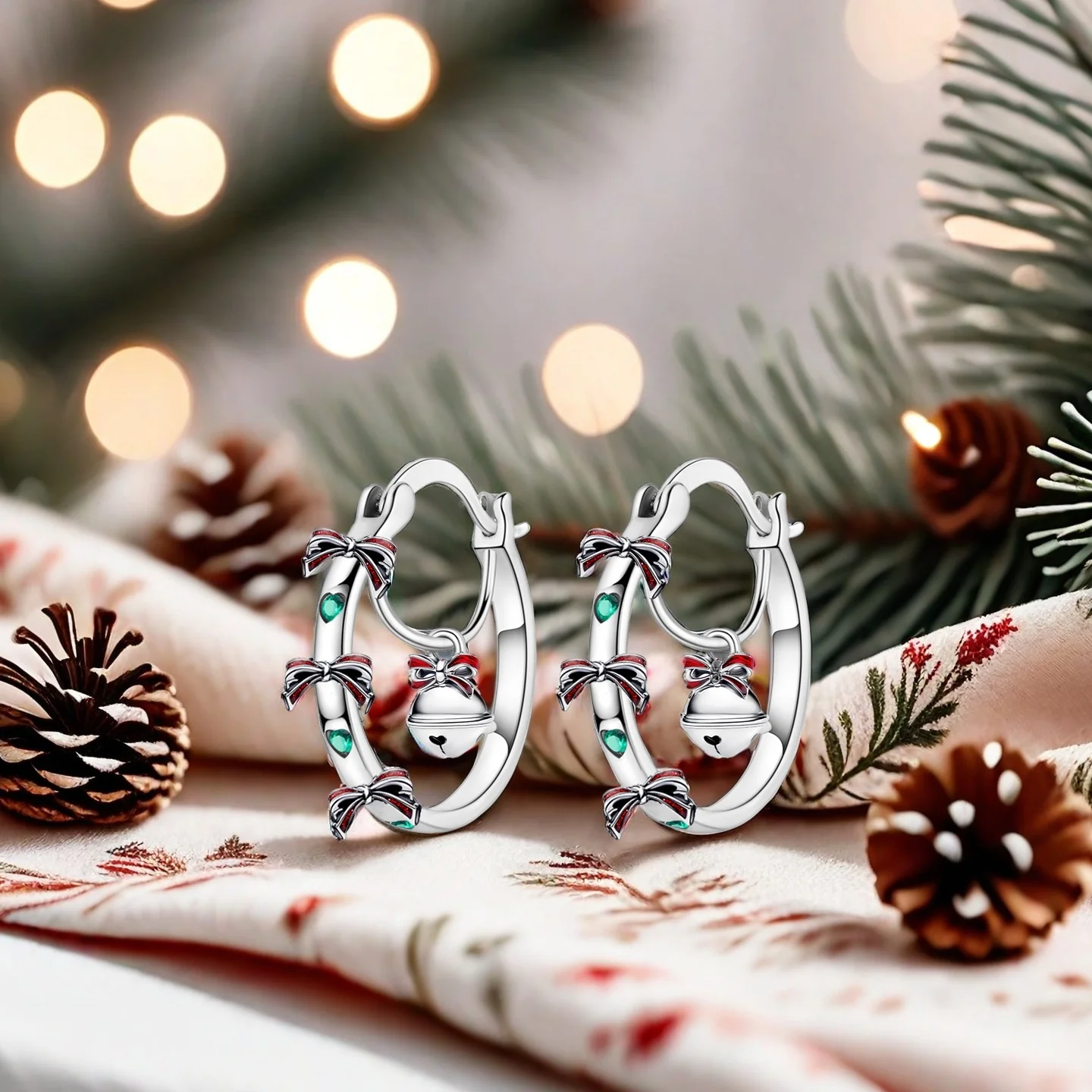 Elegant Christmas Bow Bell Ring Earrings Set 925 Sterling Silver Women's Festive Party Jewelry Gift Cute Bell Design