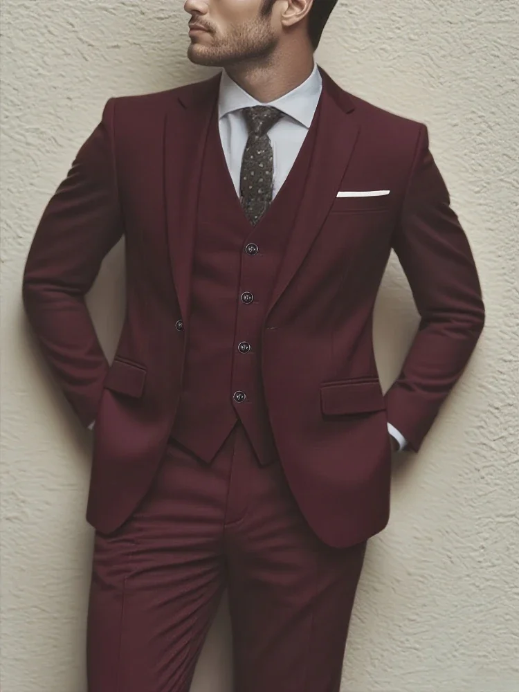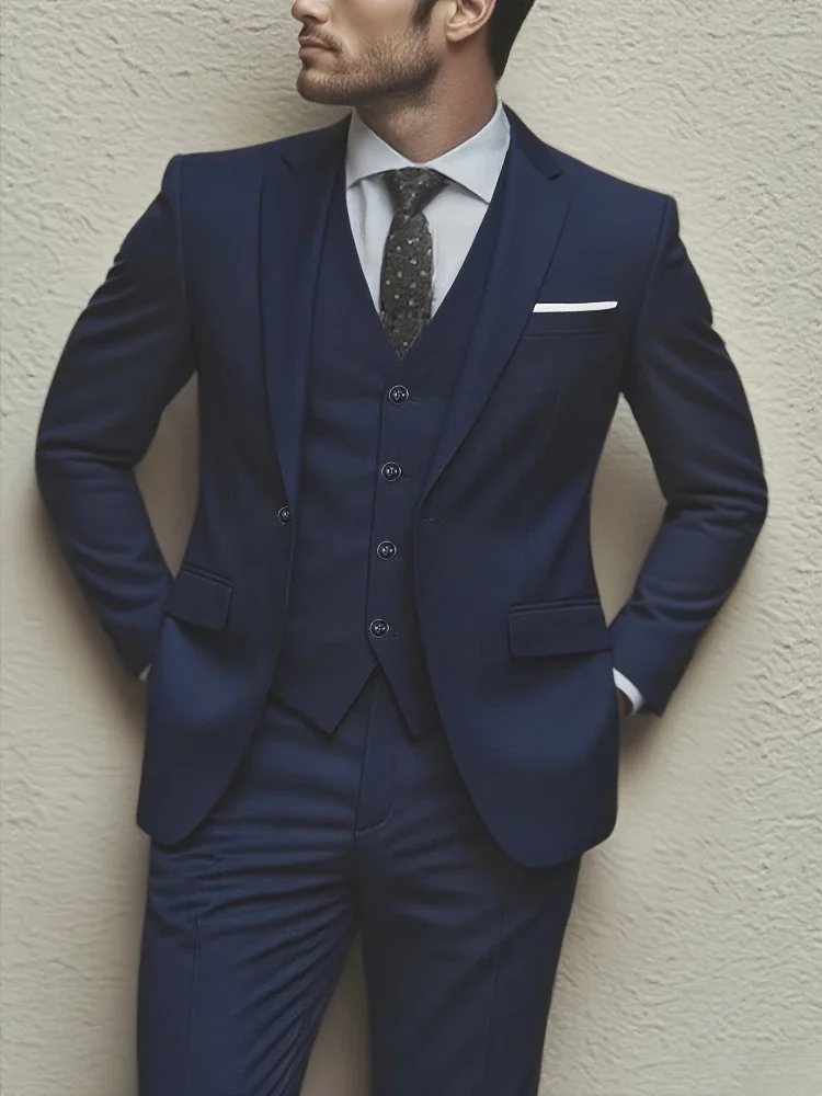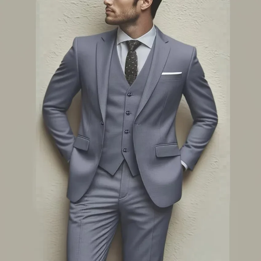 Elegant Men's 3pcs Suit- Slim Fit Tuxedo Set for Weddings& Formal Occasions Perfect for Office Meetings and Elegant Events