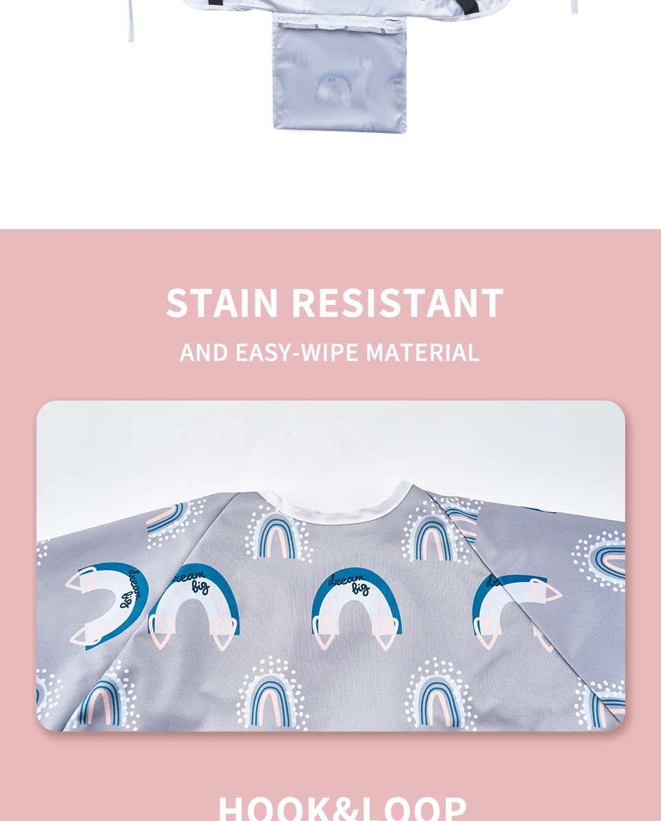 Elinfant Long Sleeve Coverall Baby Feeding Bibs ,Towel Burp Apron Waterproof Popular Print Baby Highchair Feeding Cover