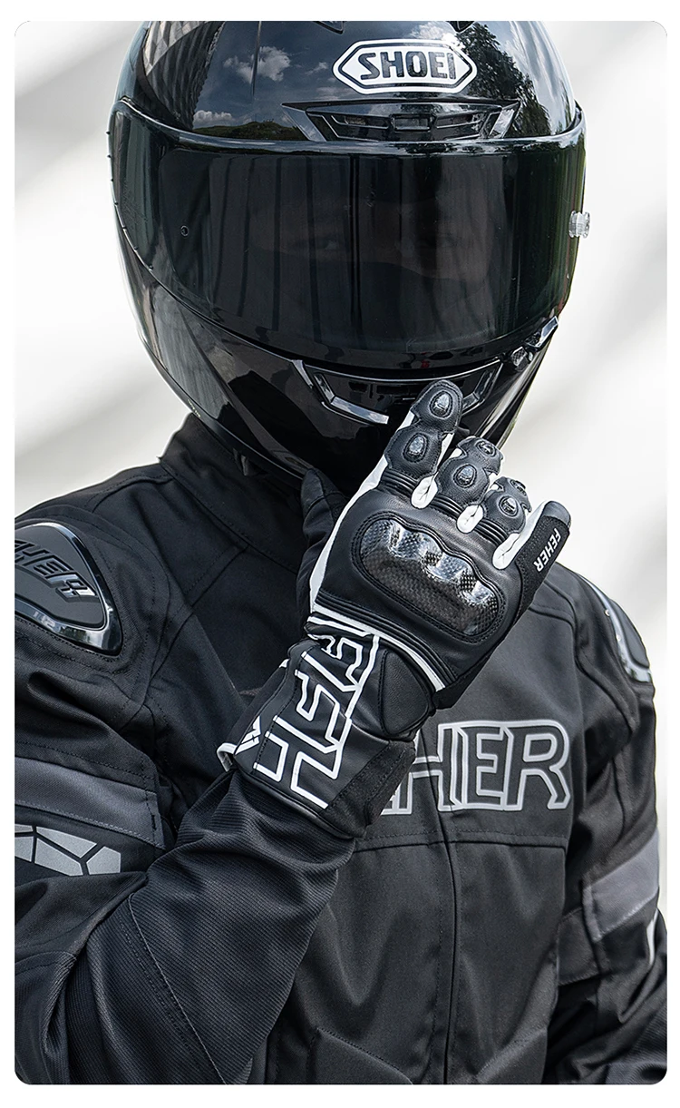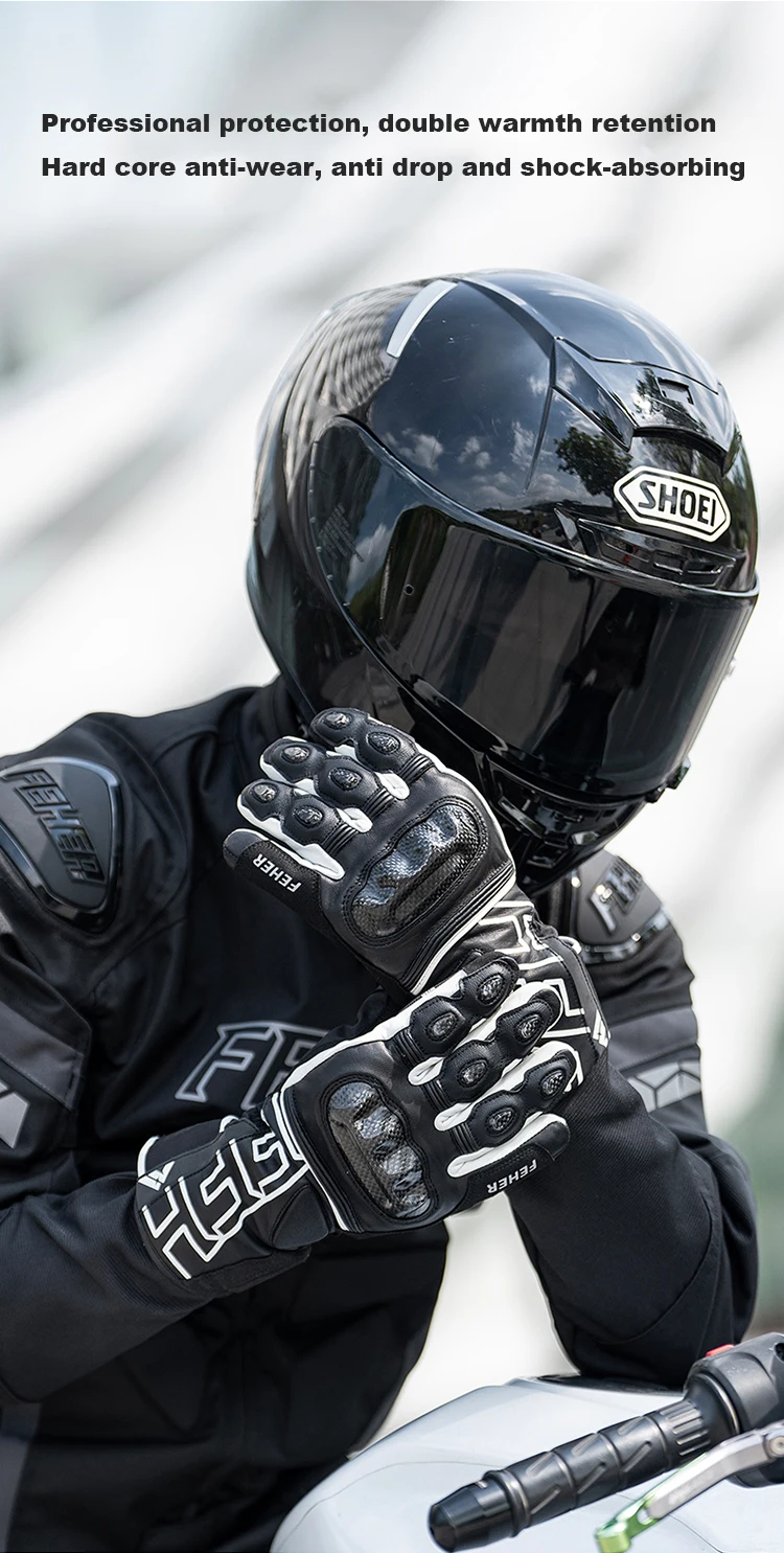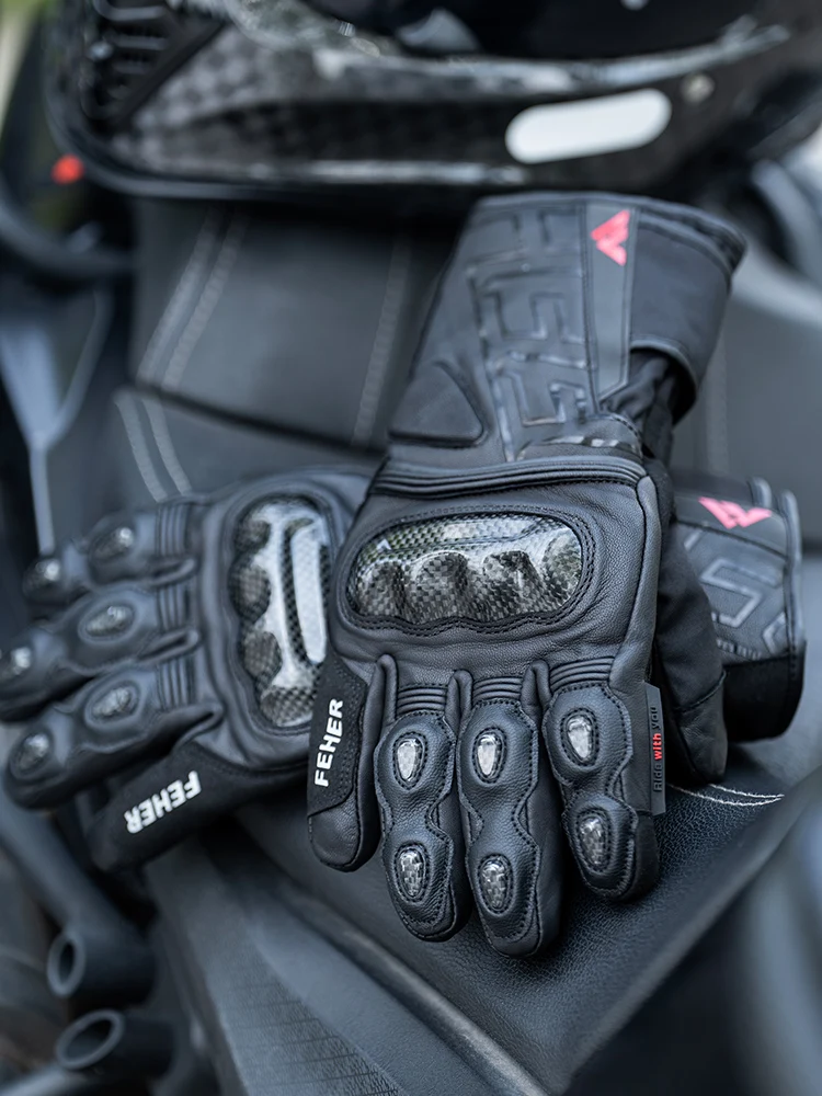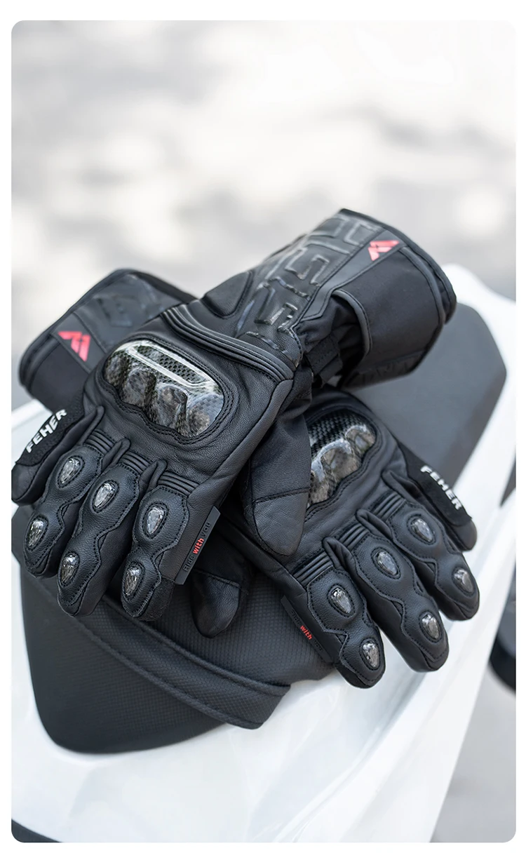 FEHER Winter Motorcycle Gloves Waterproof Touchscreen Leather Keep Warm Finger Joint Carbon Fiber Design Motorbike Riding Gloves