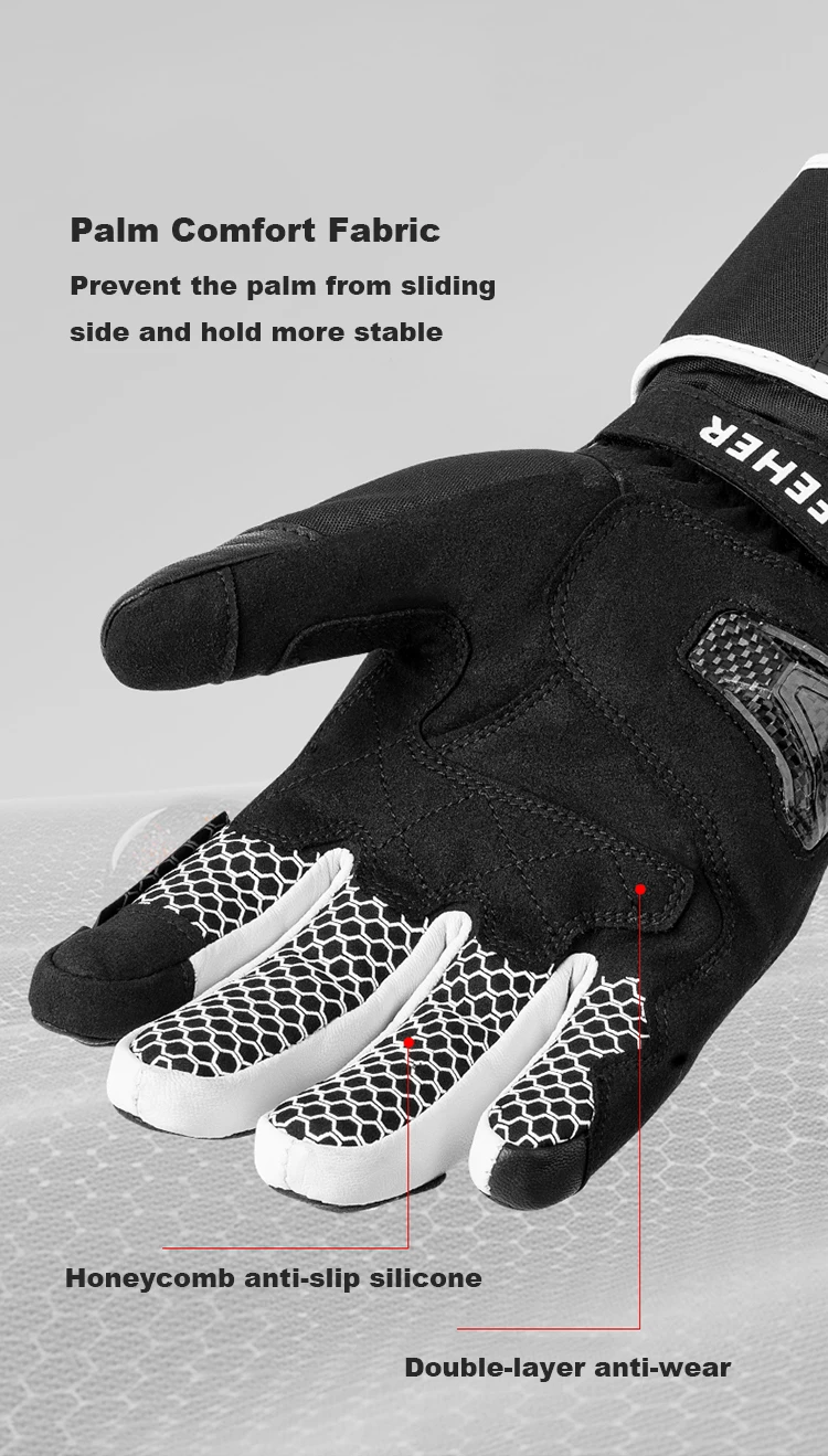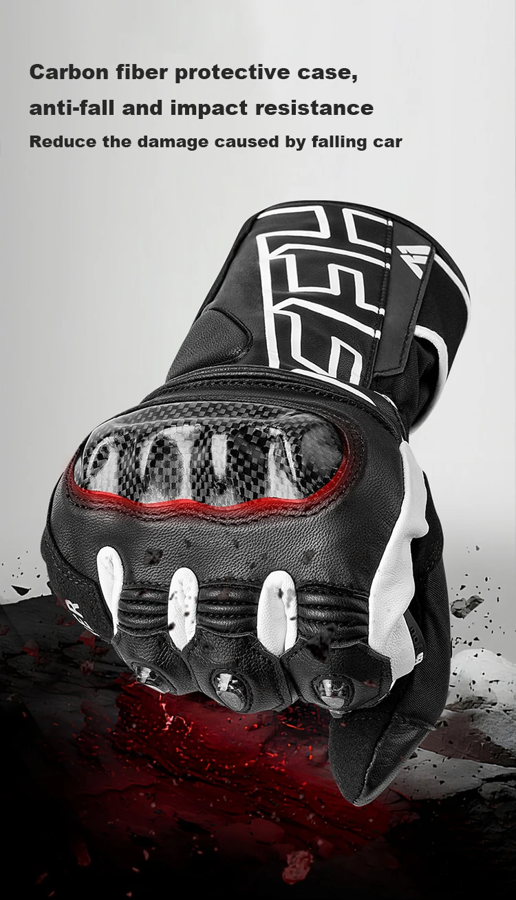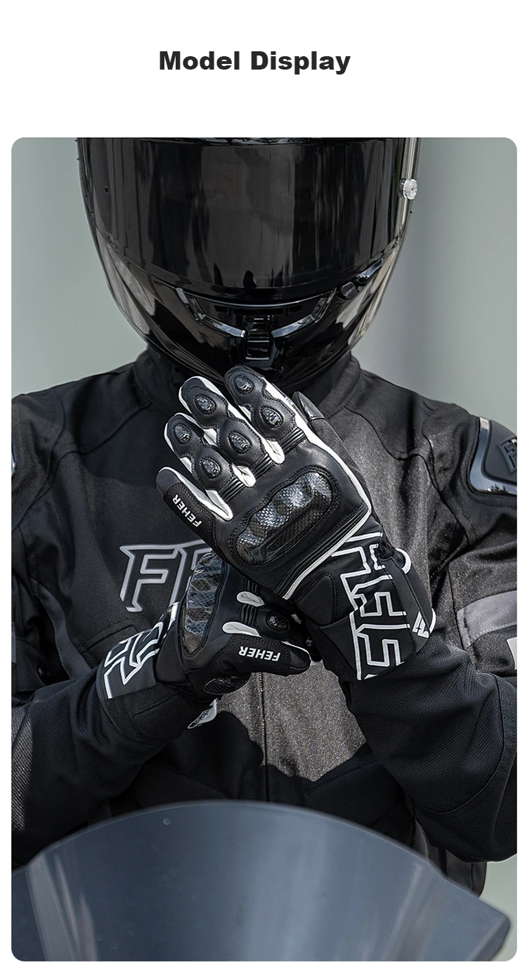 FEHER Winter Motorcycle Gloves Waterproof Touchscreen Leather Keep Warm Finger Joint Carbon Fiber Design Motorbike Riding Gloves