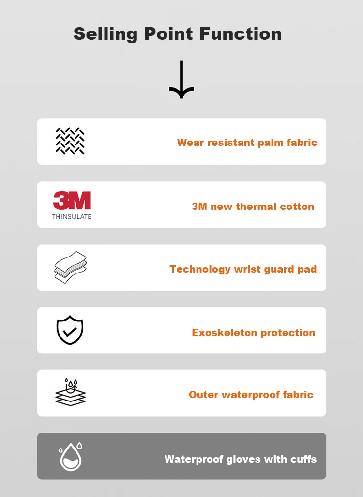 Function: Warm, waterproof, windproof, fall-proof,inger joint carbon fiber design, wear-resistant,Touchscreen