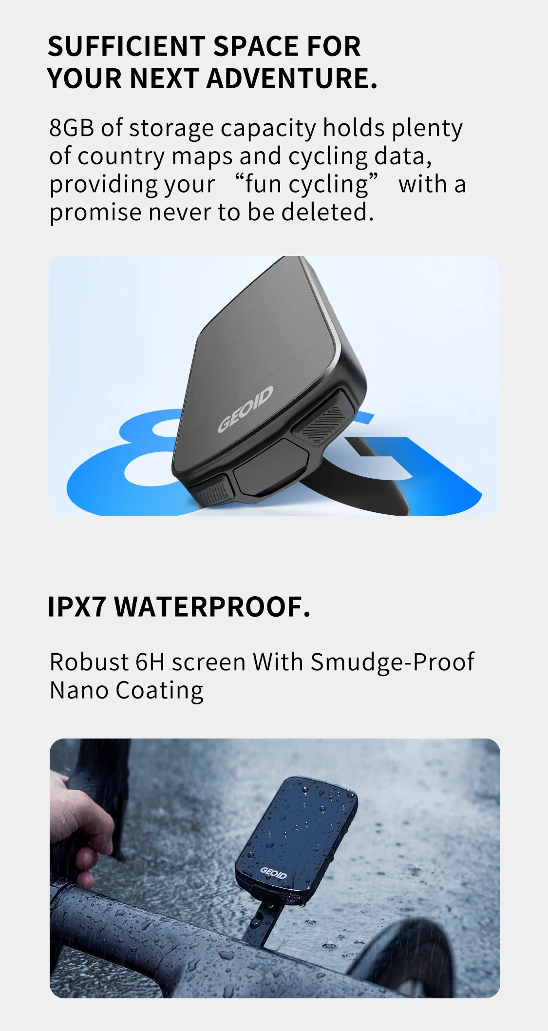 4. 8GB of storage capacity holds plenty of country maps and cycling data, providing your “fun cycling” with a promise never to be deleted.