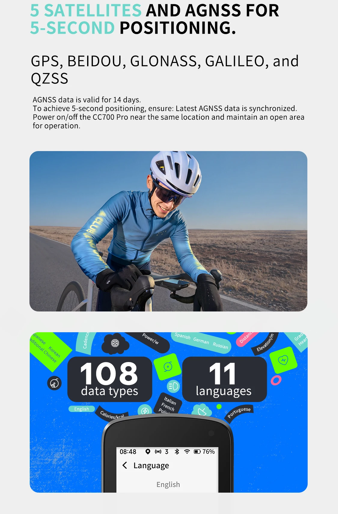 (To achieve 5-second positioning, ensure: Latest AGNSS data is synchronized. Power on/off the CC700 Pro near the same location and maintain an open area for operation.)