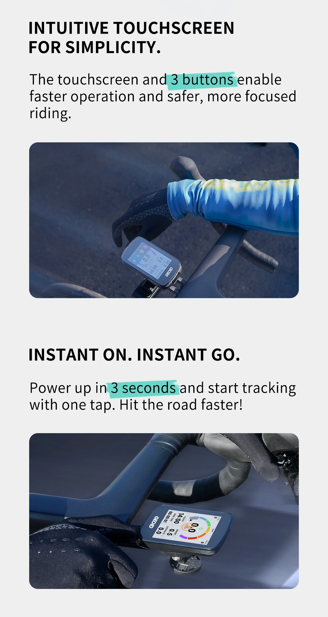 3.Power up in 3 seconds and start tracking with one tap. Hit the road faster!