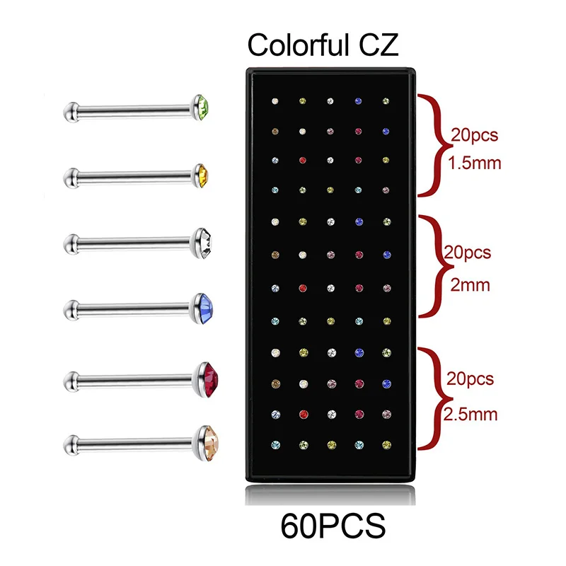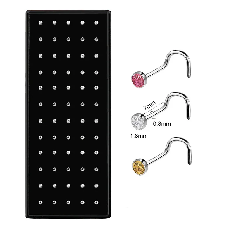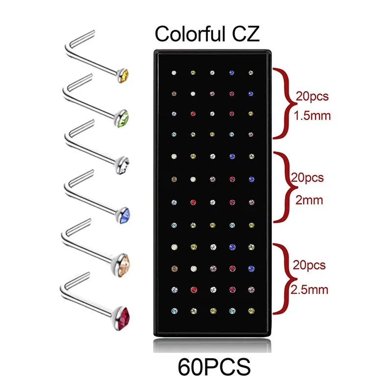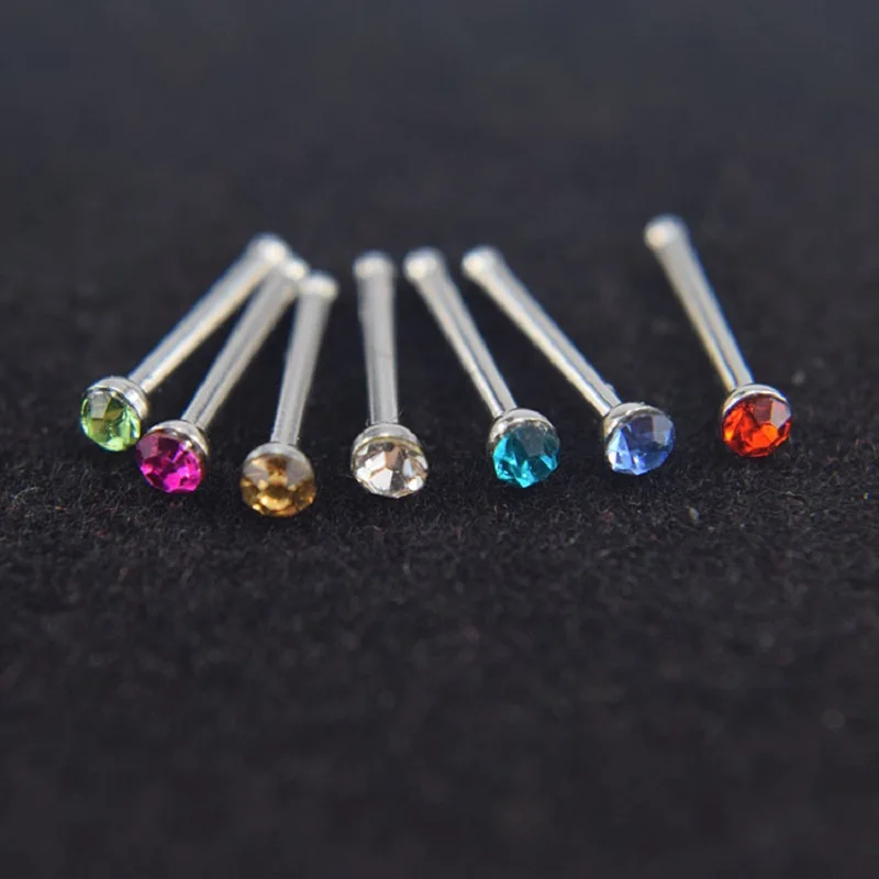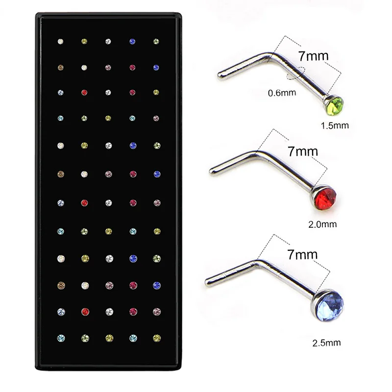L Shape Stainless Steel Crystal Nose Ring Set Women Surgical Steel Nose Piercing Set ear bone needle Studs Body Jewelry