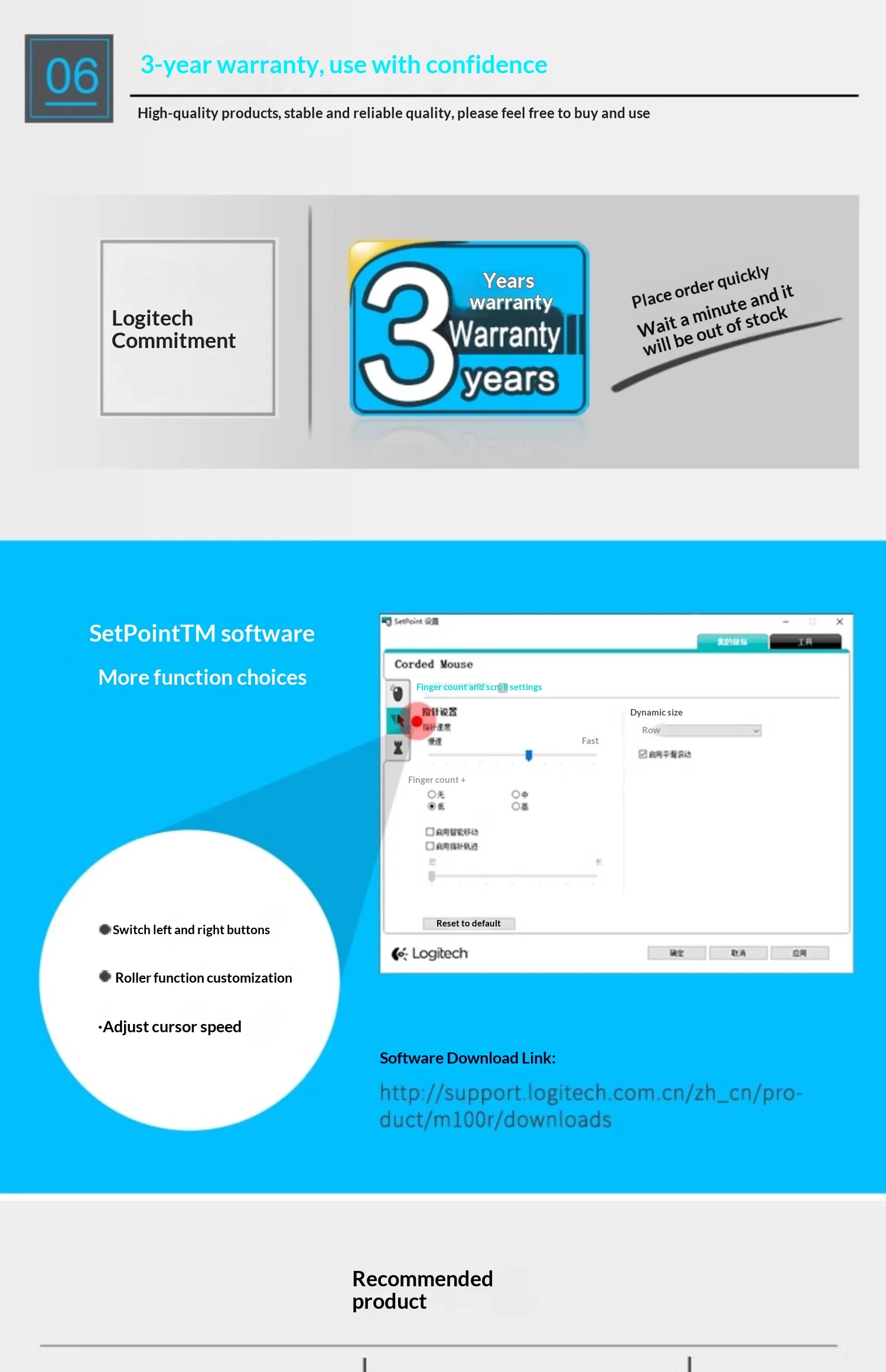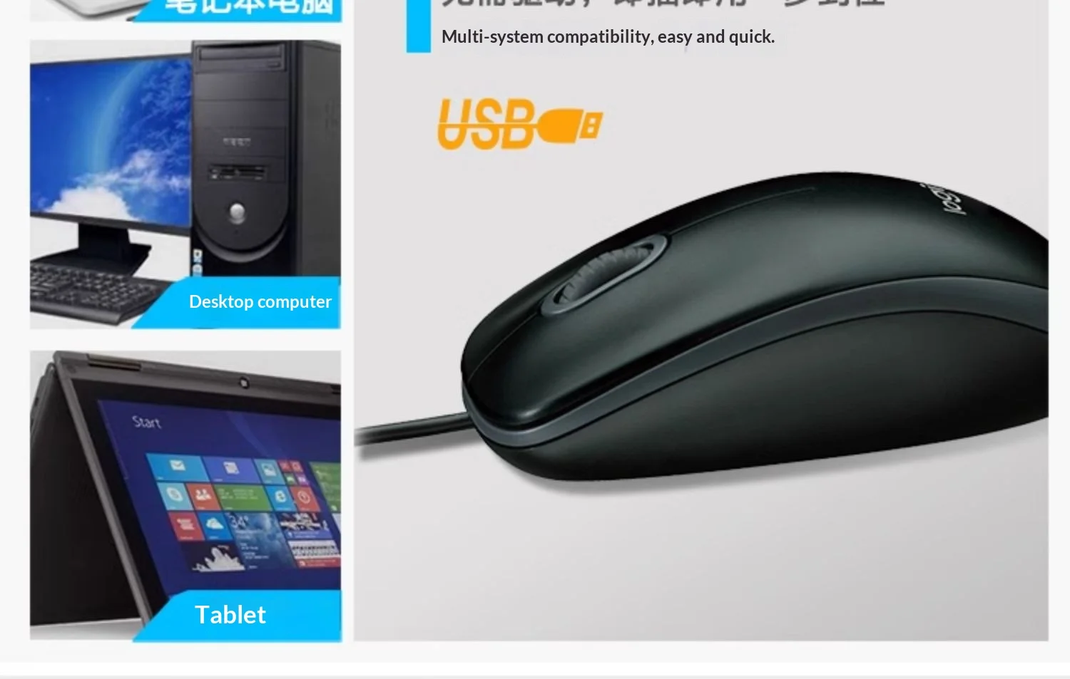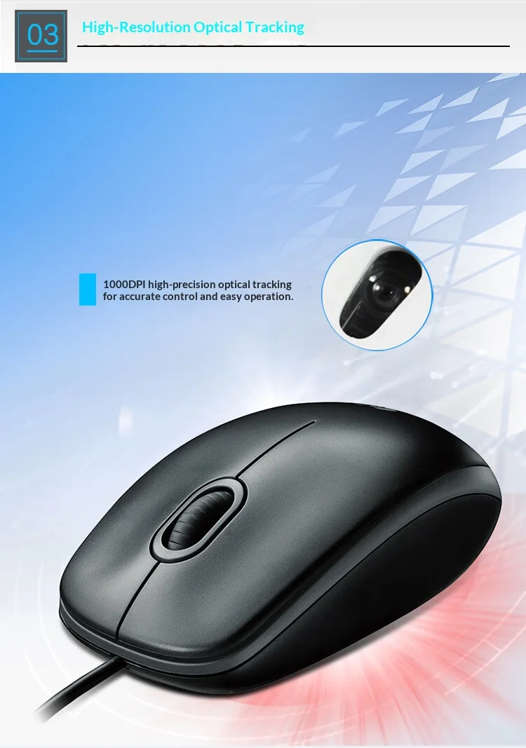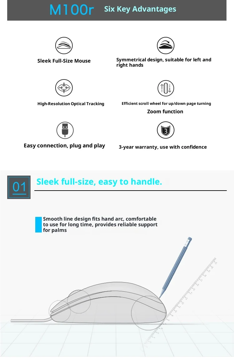 Logitech M100R Wired USB Mouse, Durable & Reliable, Perfect for Home, Office, Gaming and Laptop Use
