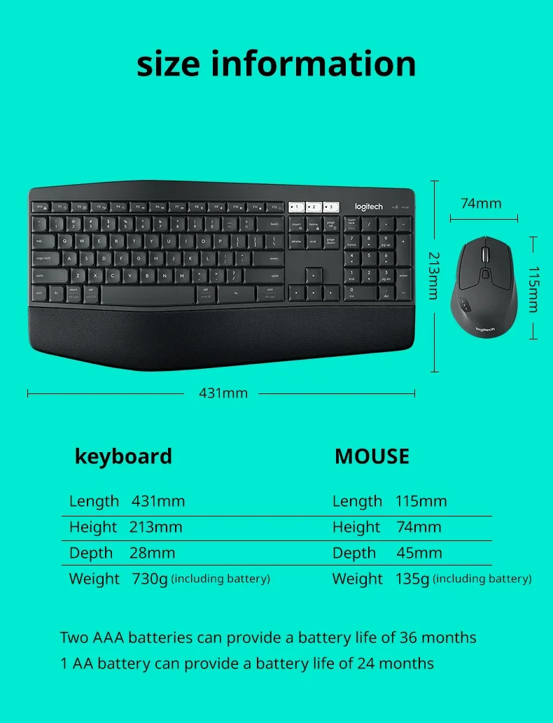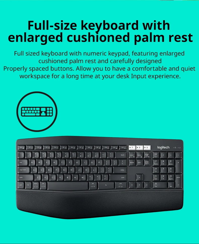 1. The full-size keyboard comes with a cushioned palm rest and carefully crafted keys, allowing you to type quietly and comfortably on your desktop for hours.