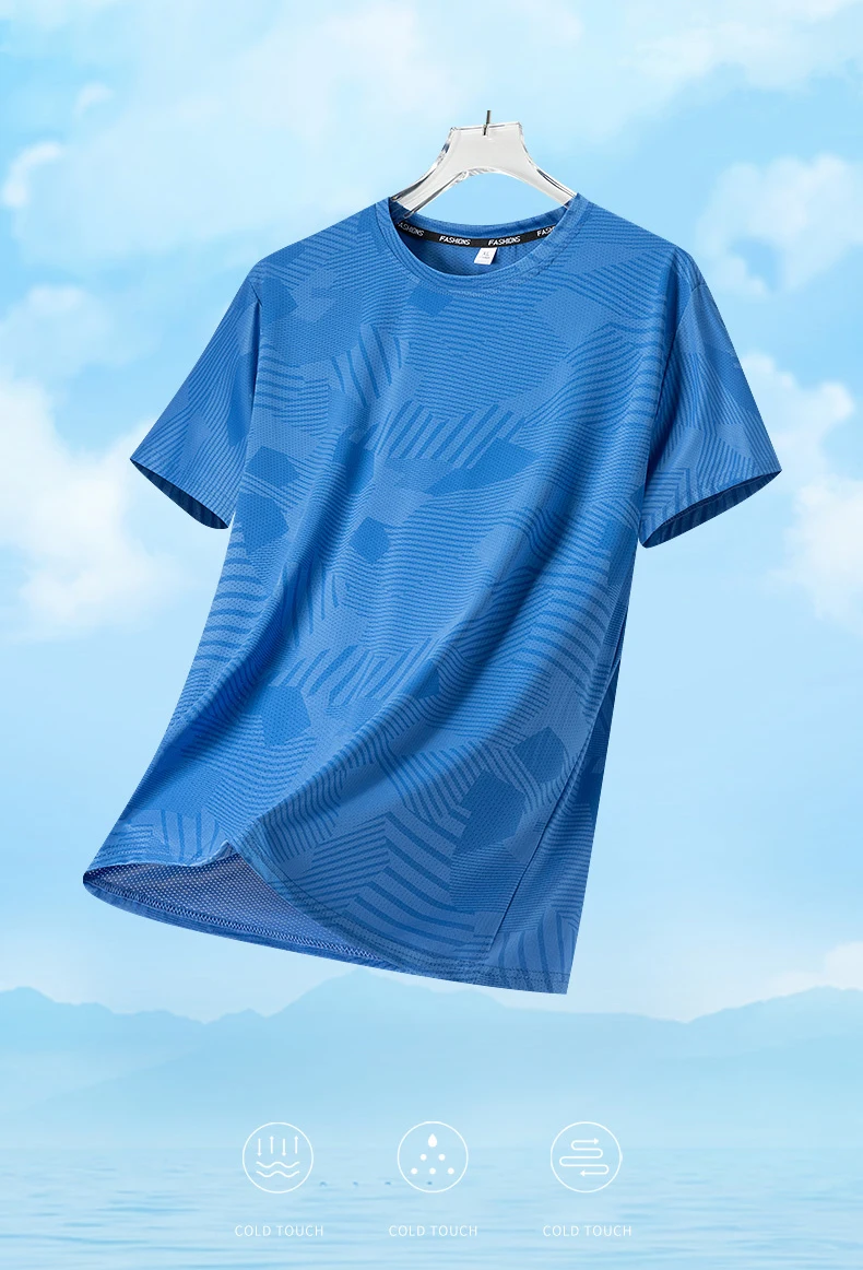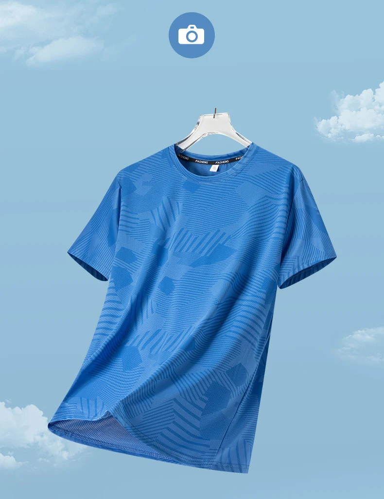 Male Running T-shirt Summer Breathable Wear-Resistant Fitness Sports T-shirt Outdoor Lightweight Jogging Gym Training Sportswear