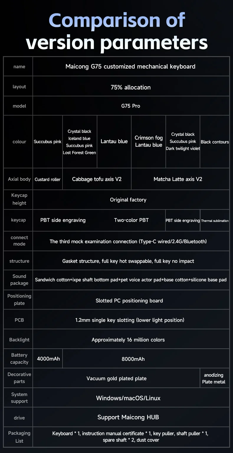 MCHOSE G75 Pro Gaming Mechanical Keyboard Tri-Mode Wireless Hot Swappable RGB Backlit Customized 75% Layout Pc Gamer Accessories