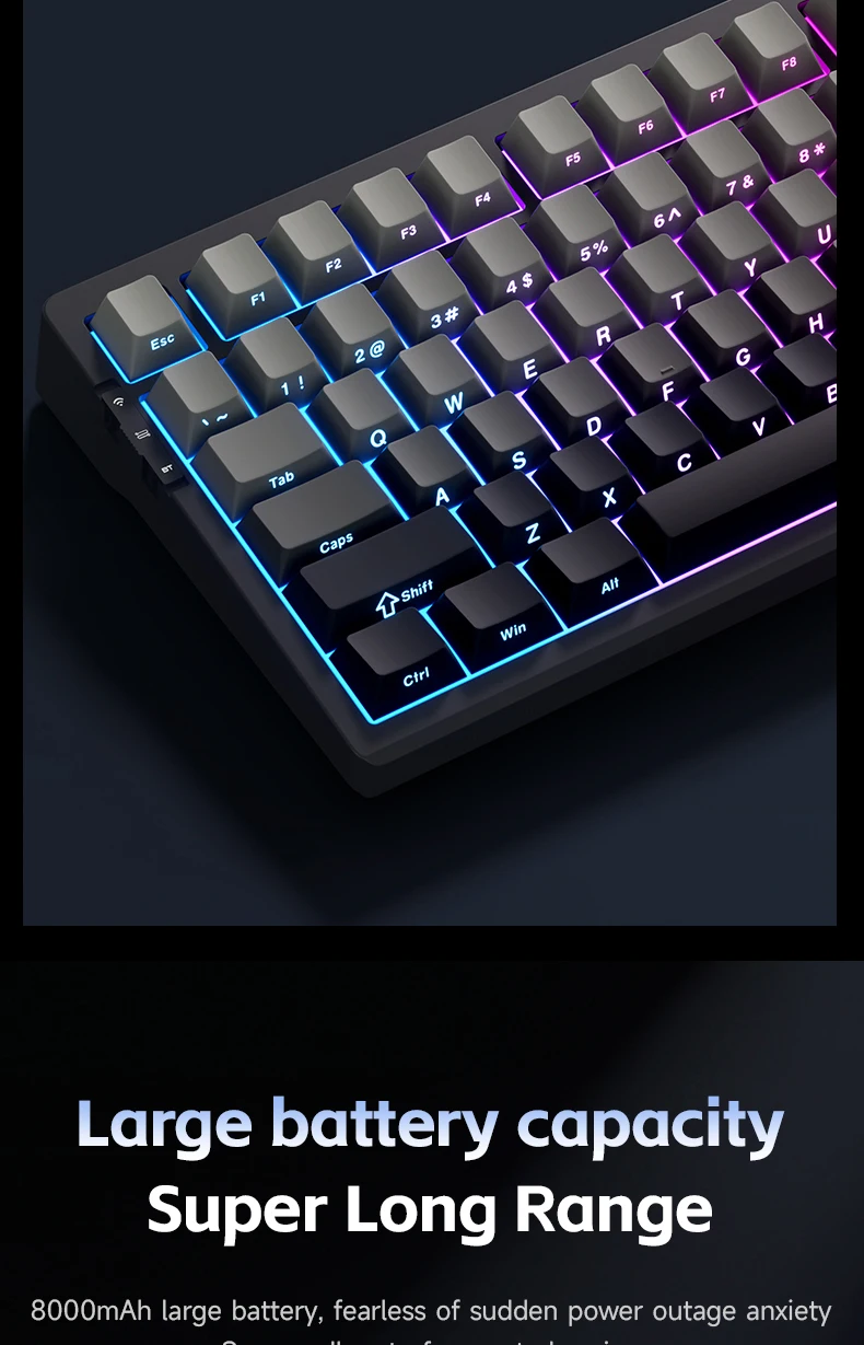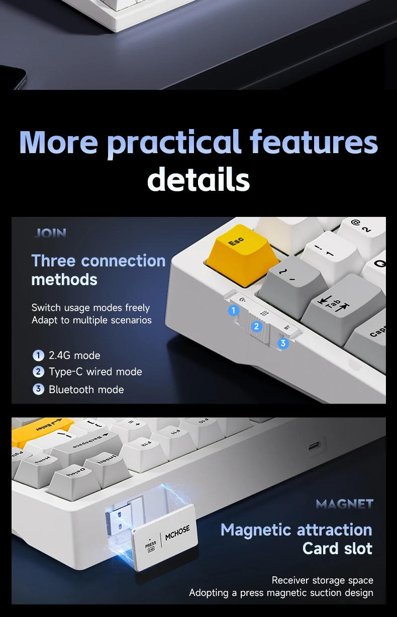 -Tri-Mode Connectivity: Easily switch between 2.4GHz wireless, Bluetooth, or USB wired mode for seamless connectivity across devices. Perfect for gaming, work, or leisure on multiple platforms.