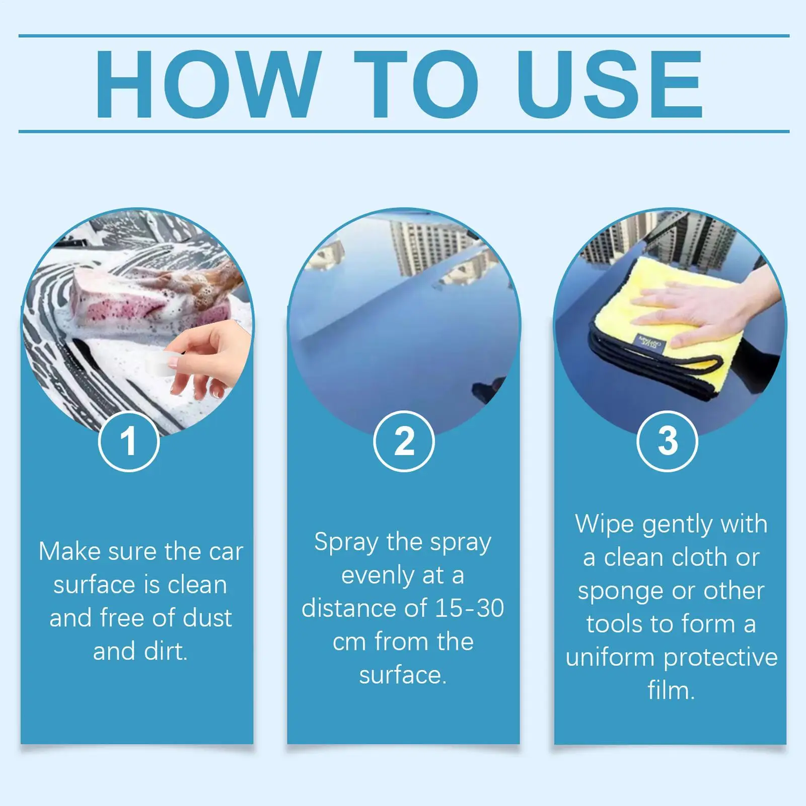1.Enhanced Surfaces Shielding: Protect your vehicle with a spray that provides waterproof, dustproof, and UV-resistant features, ensuring long-lasting shine and cleanliness through advanced coating technology