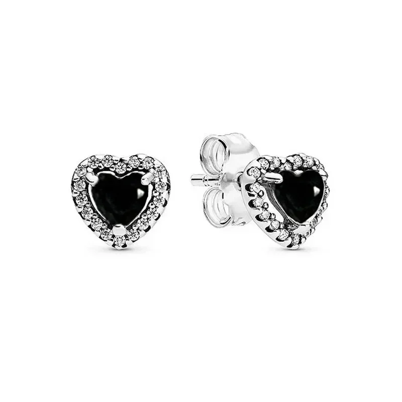 New 925 sterling silver heart-shaped earrings, rings, necklaces, pink red rainbow luxury set, sparkling charm jewelry, gifts