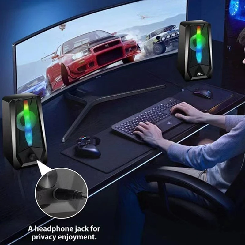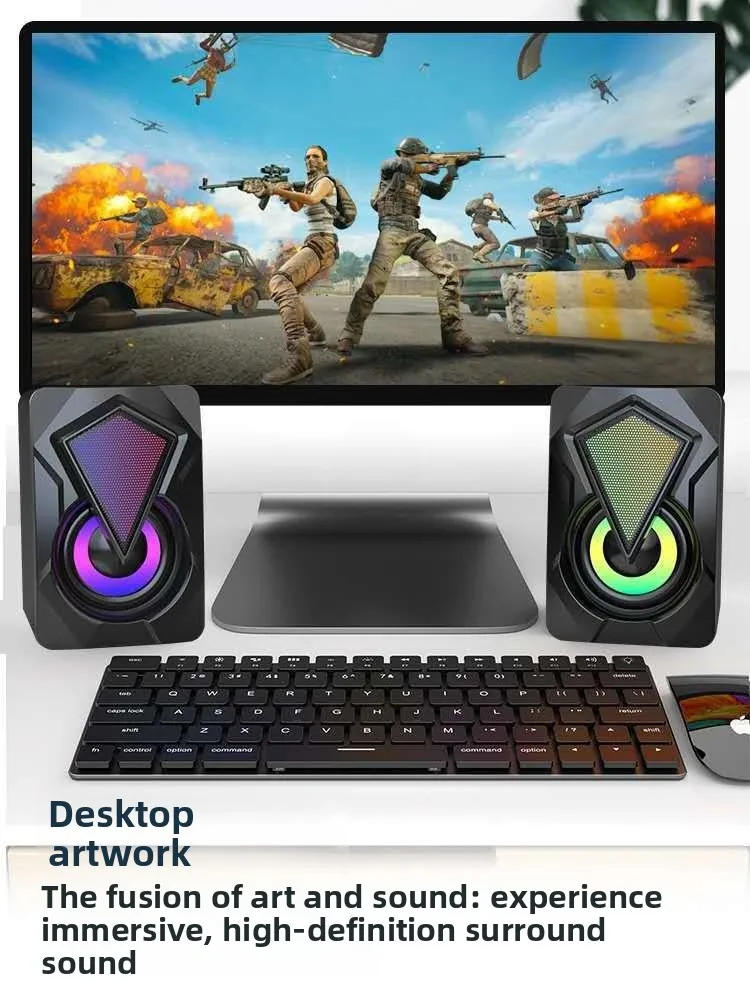 New X2 computer speaker, illuminated desktop laptop, multimedia mini wired RGB speaker