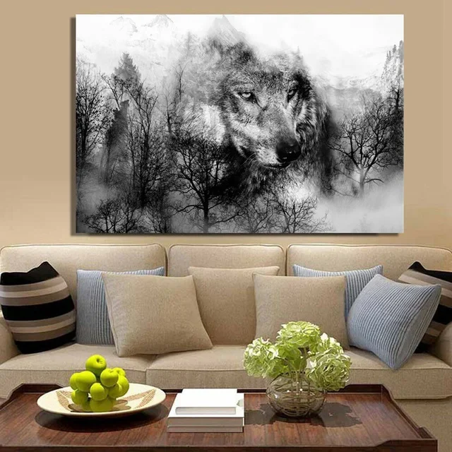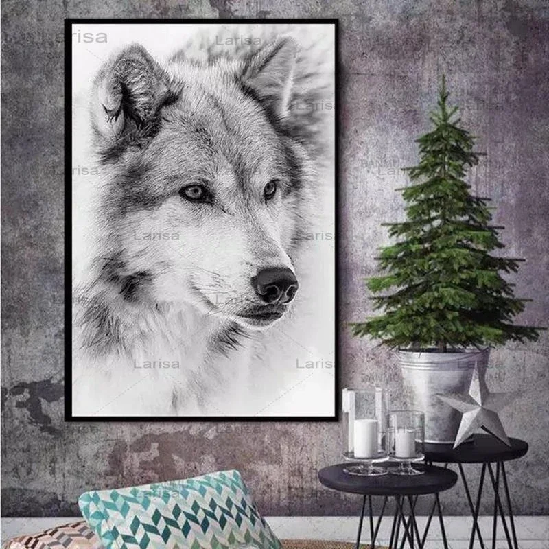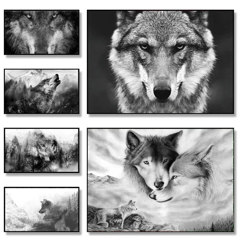 Nordic Style Forest Wolf Head Wall Art Pictures Wild Animals Posters Black White Canvas Painting Prints Office Home Room Decor