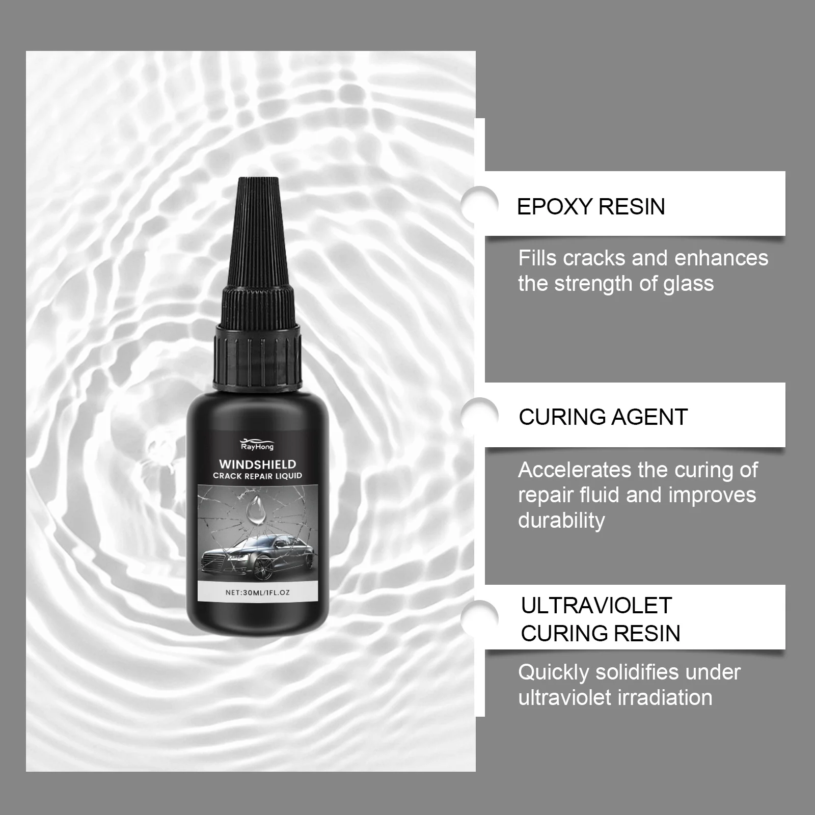 Professional Windshield Repair Kit Permanent Crack Repair Resin for Car Glass DIY Fix Chip Scratch Crack with UV Light Cure 30ml