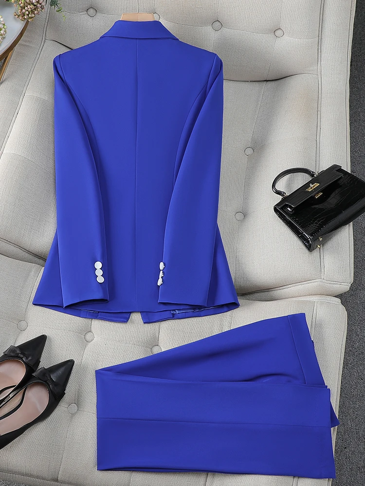 S-8XL Ladies Formal Pant Suit 2 Piece Set Women Female Long Sleeve Triple Breasted Business Work Wear Blazer Jacket And Trouser