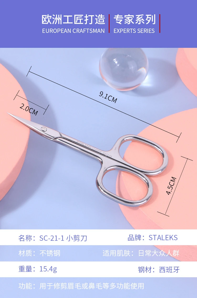 STALEKS SC-21-1 Nail Cuticle Scissors Stainless Steel Eyebrow Scissors Manicure Remove Dead Skin Trim Nose Hair Makeup Tool