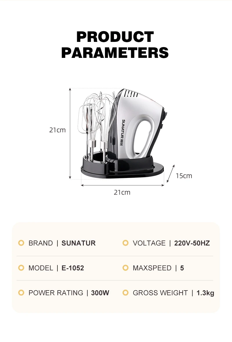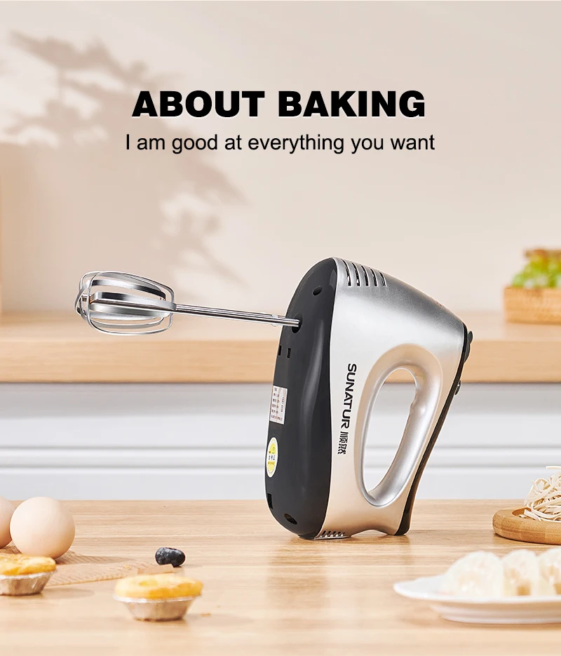 SUNATUR Electric Kitchen Blender Machine: Handheld Beater Processor, Supports Cake Cream Egg Mixing - Essential Home Appliance