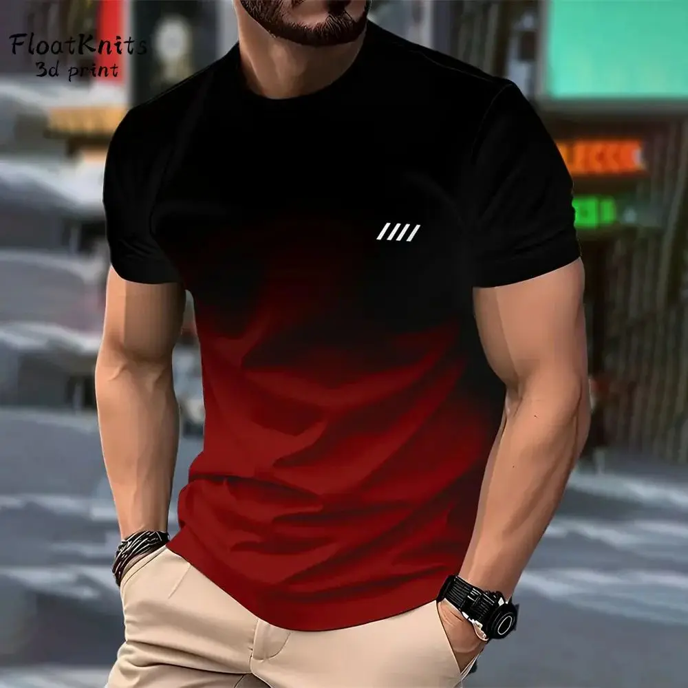 The new summer 2025 quick-drying men's T-shirt features a casual fashionable and streetwear 3D gradient print