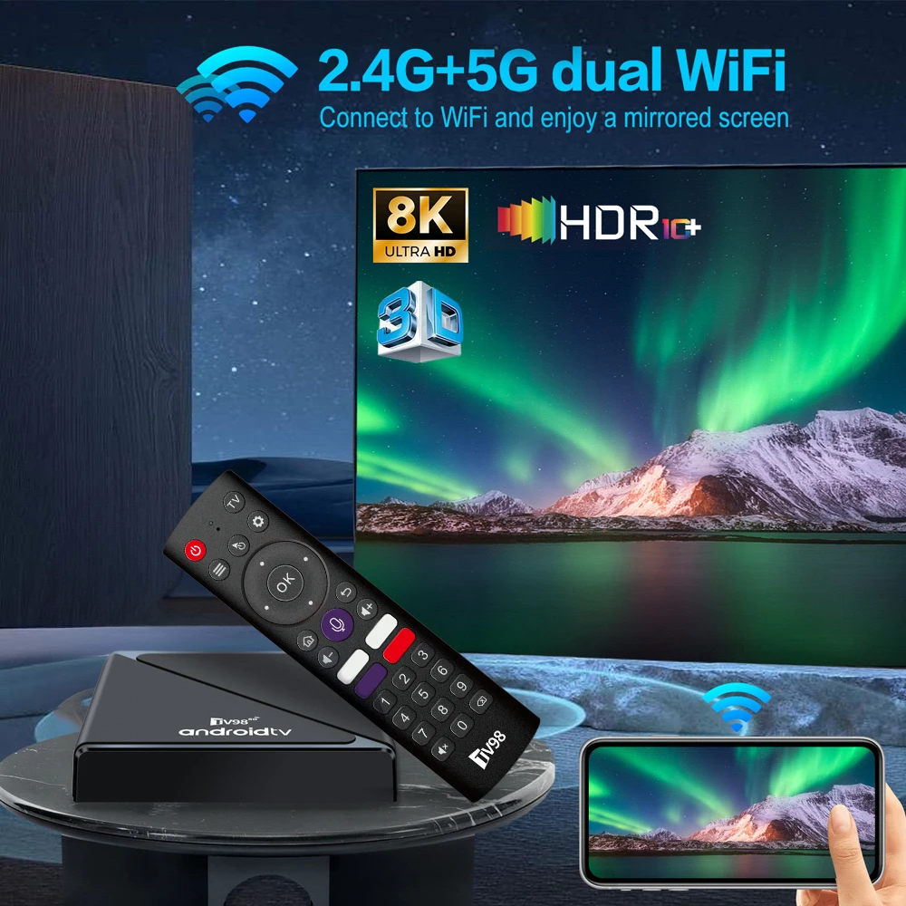 TV98 ATV Pro TV Box Android 14 Allwinner H313 Quad Core 4G 5G Dual Wifi 8K 4K Media Player TB 5.0 Support Voice control TV Box