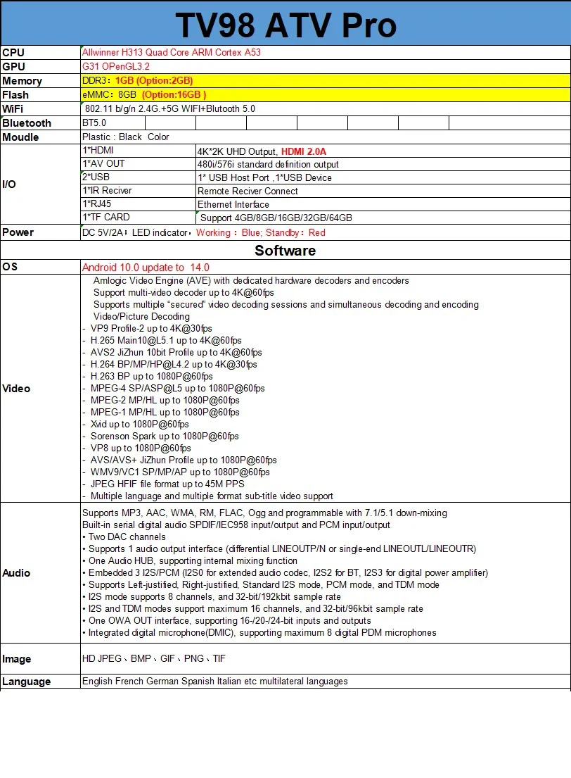 CPU: Allwinner H313,Allwinner H313 Quad Core