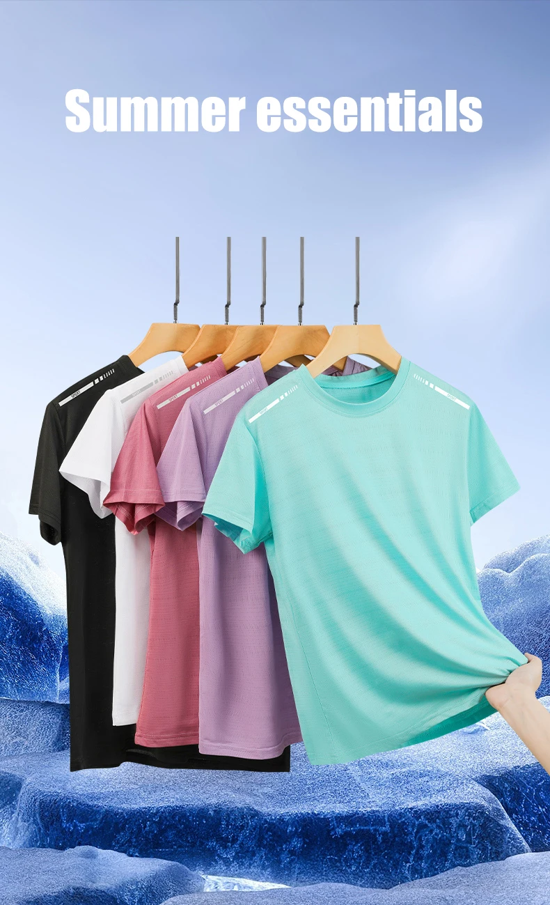Women's Mesh Summer T-Shirt Outdoor Jogging Reflective Strip Breathable Short Sleeves Women Fitness Elastic Sports T-Shirt