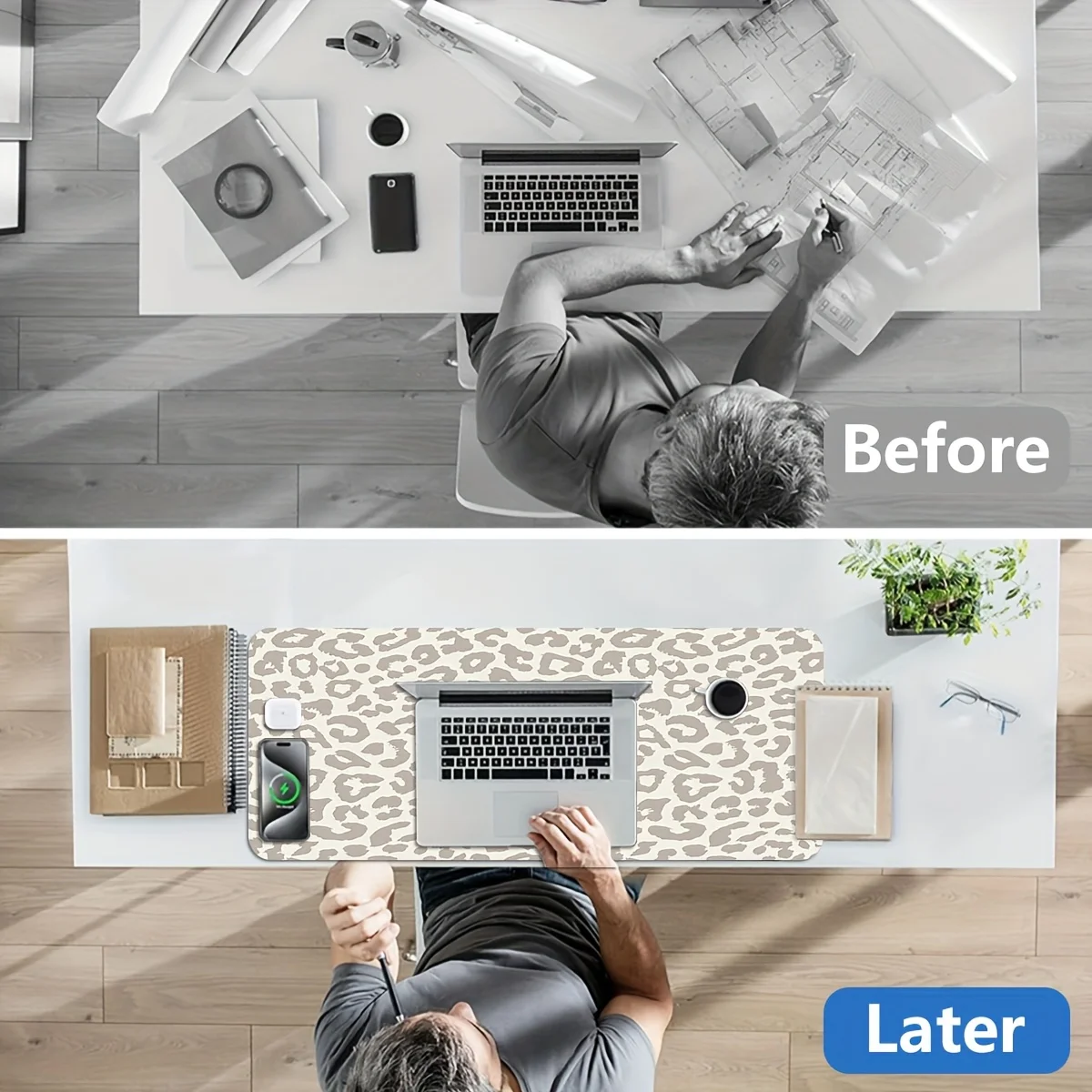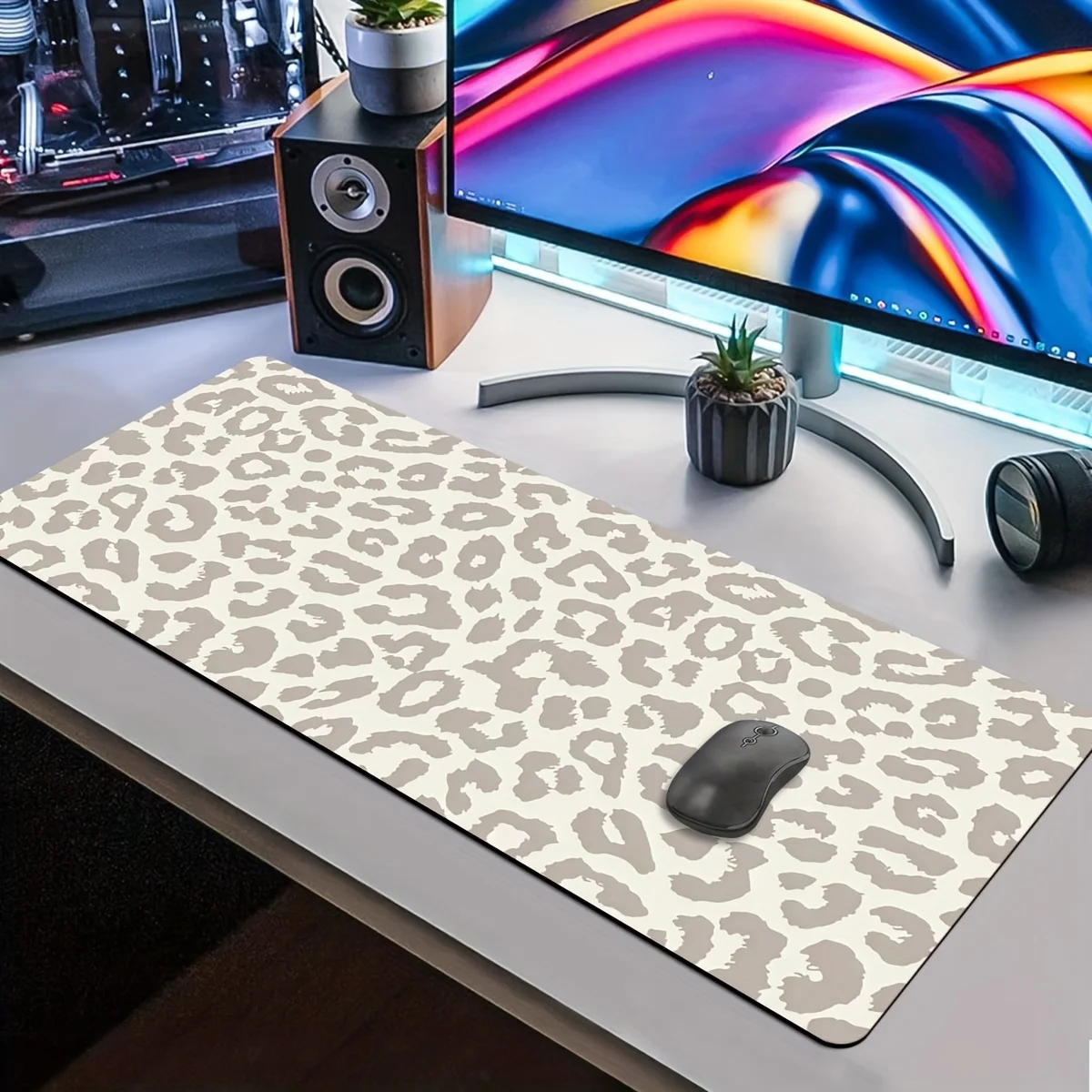 XL/XXL Computer Keyboard and Mouse Pad Beige Brown Leopard Office Home Gaming Setup Gaming Desk Accessories Carpet Mouse Mat