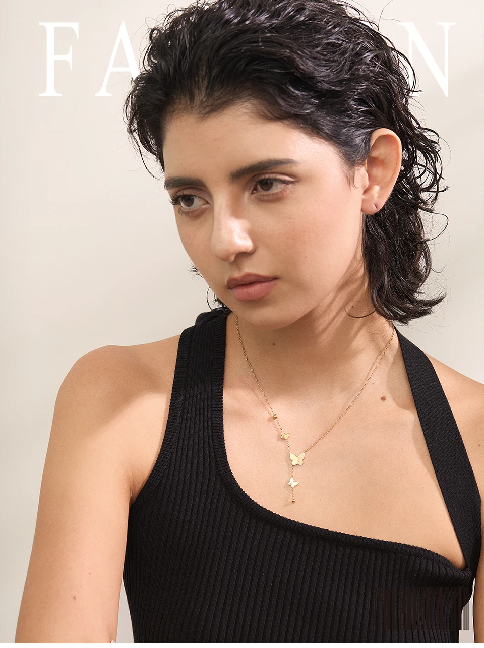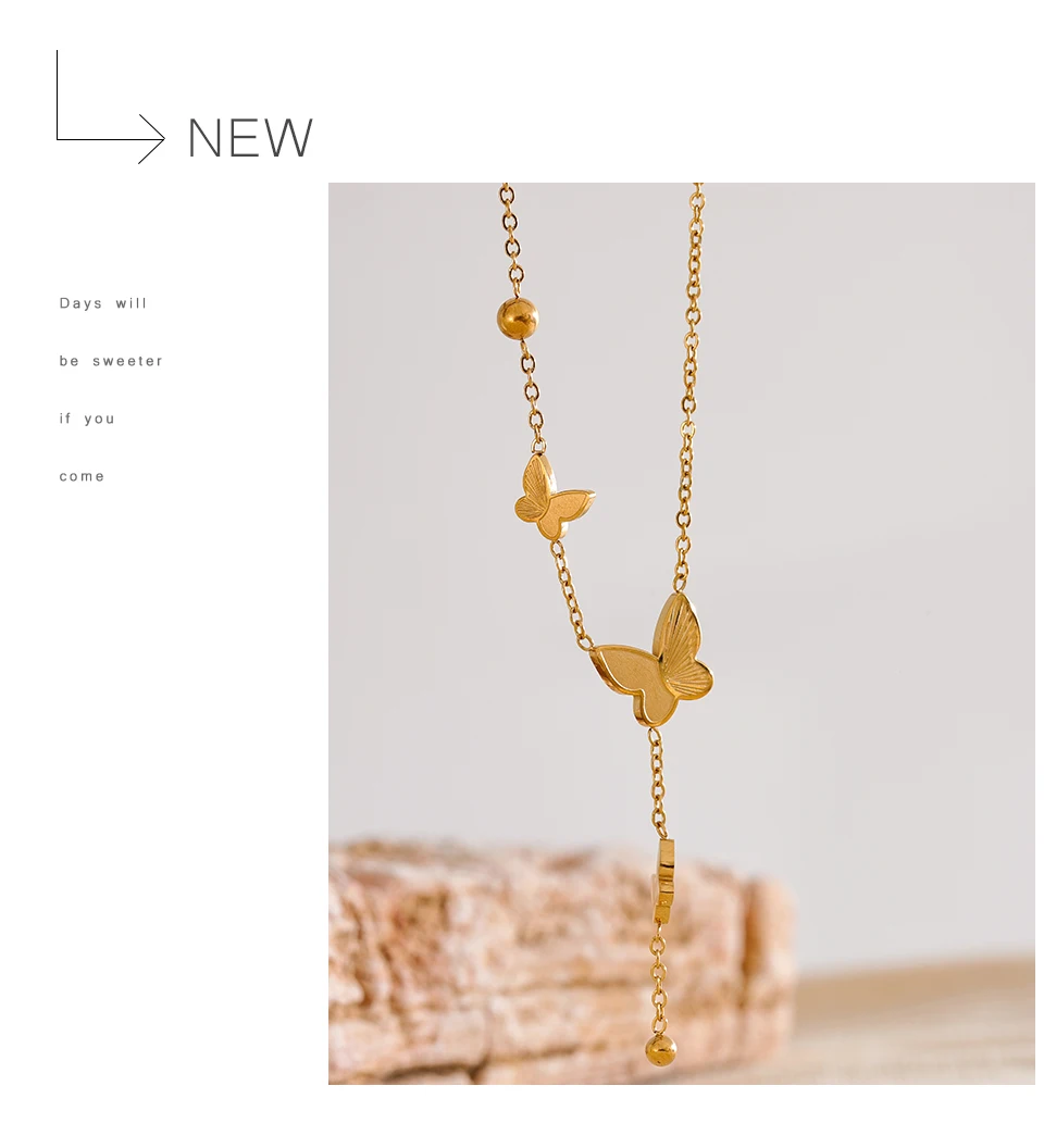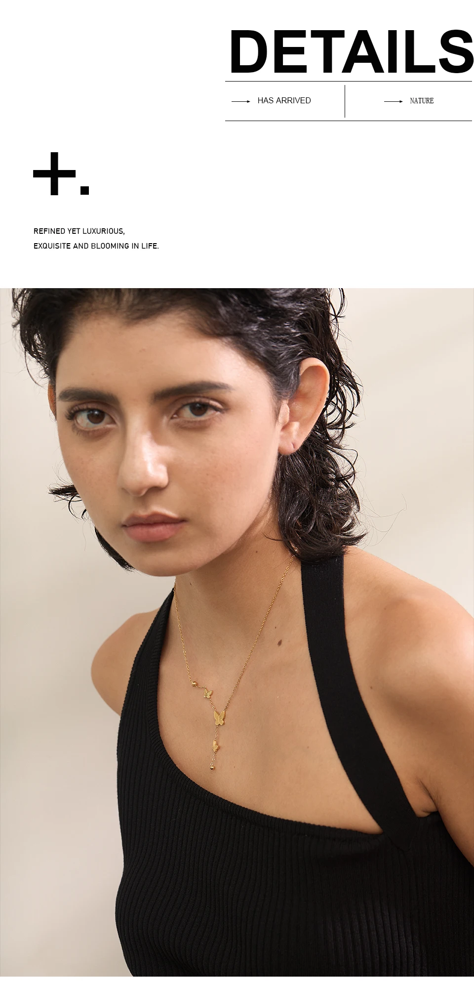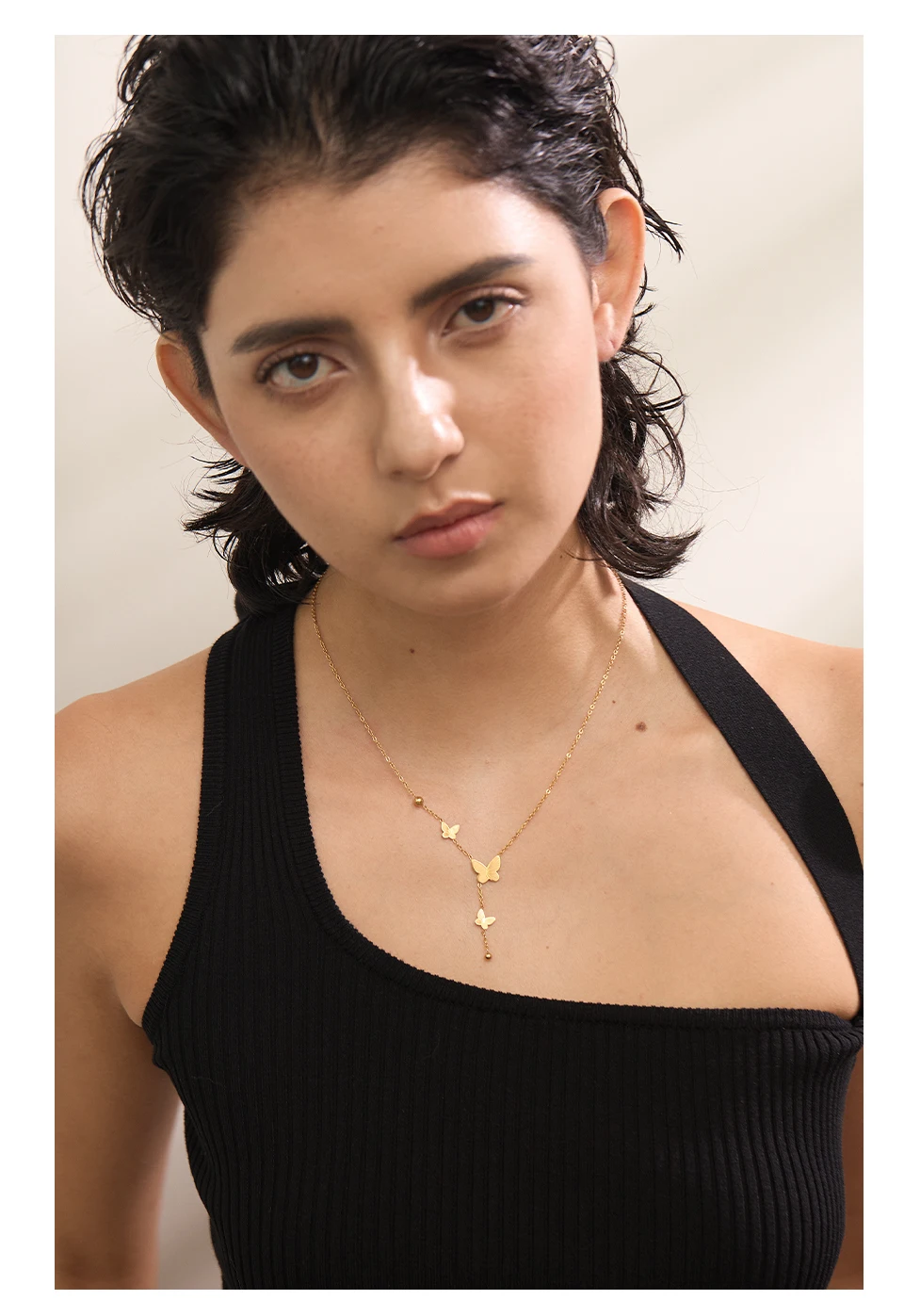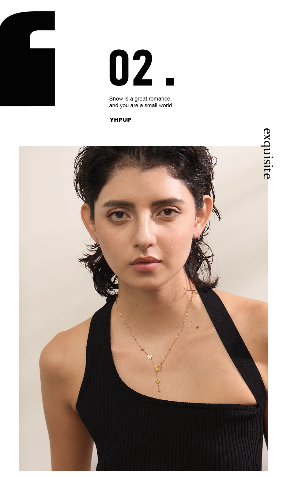 Yhpup Exquisite Butterfly Chain Pendant Necklace for Women Stainless Steel Fashion Collar Jewelry Waterproof