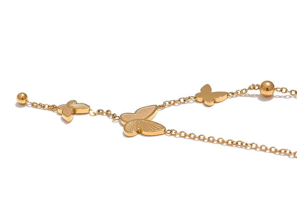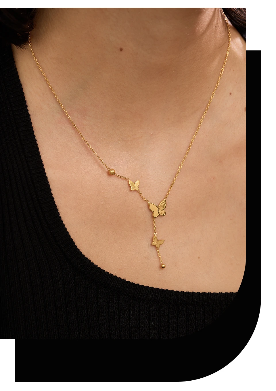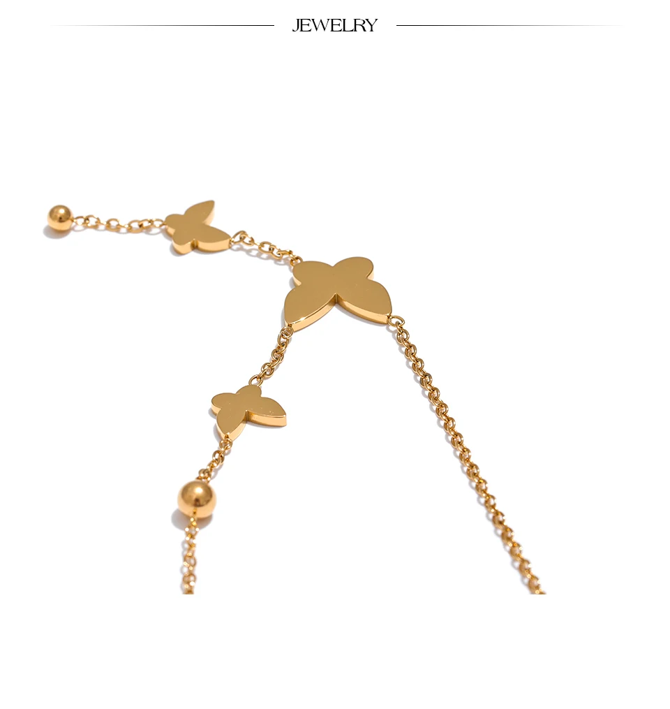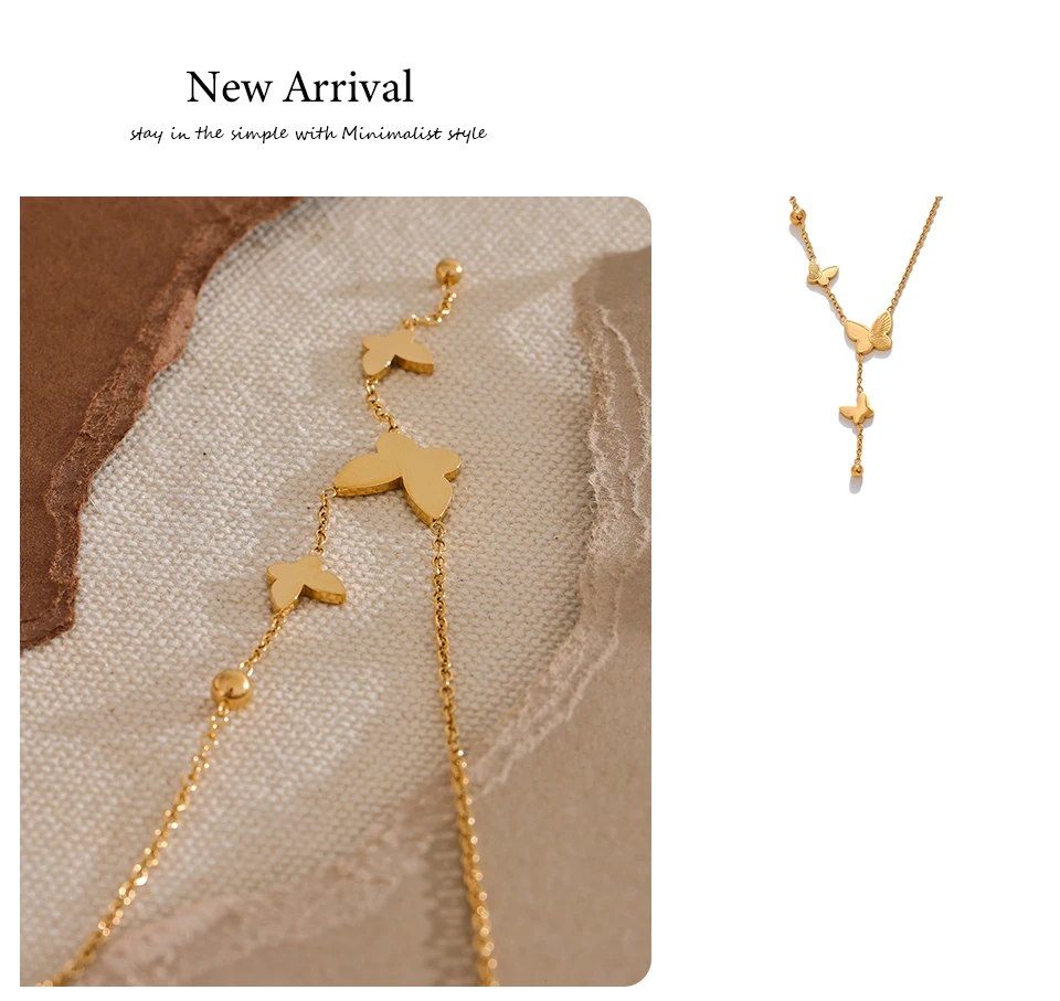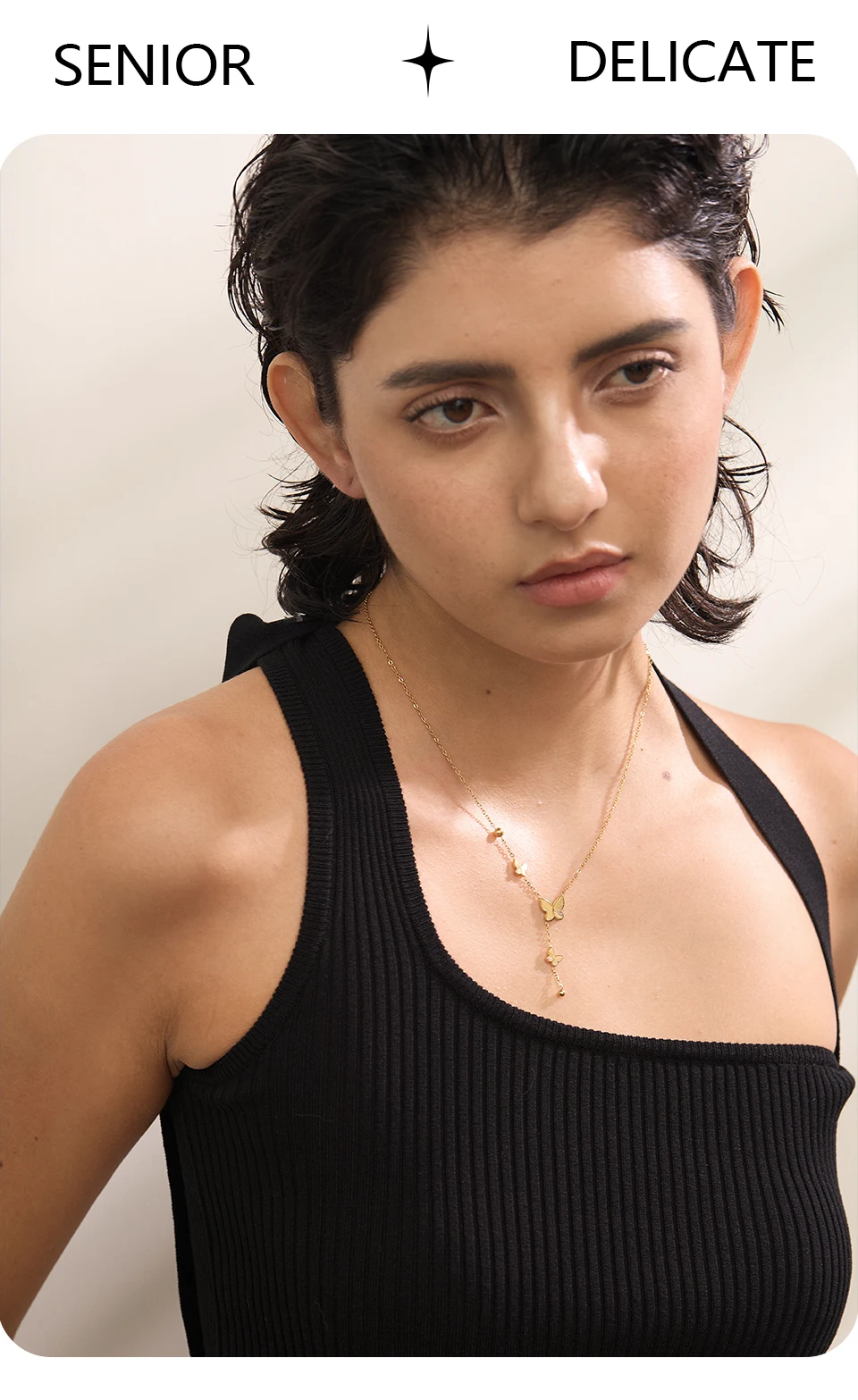 Yhpup Exquisite Butterfly Chain Pendant Necklace for Women Stainless Steel Fashion Collar Jewelry Waterproof