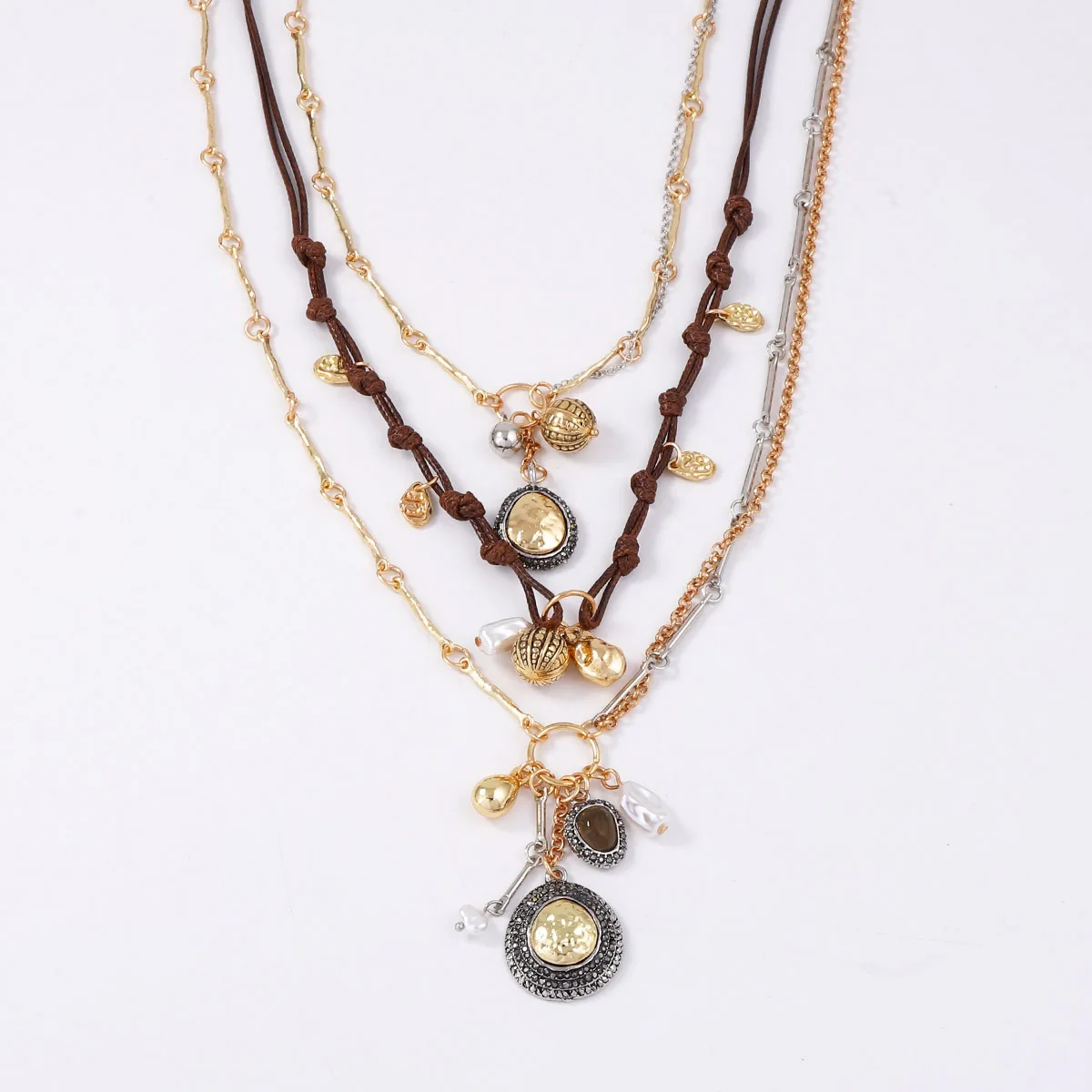 ZAA Multi-layer Rope Chains Metal Round Coin Badge Pendant Necklaces for Women Holiday Party Jewelry Neck Accessories